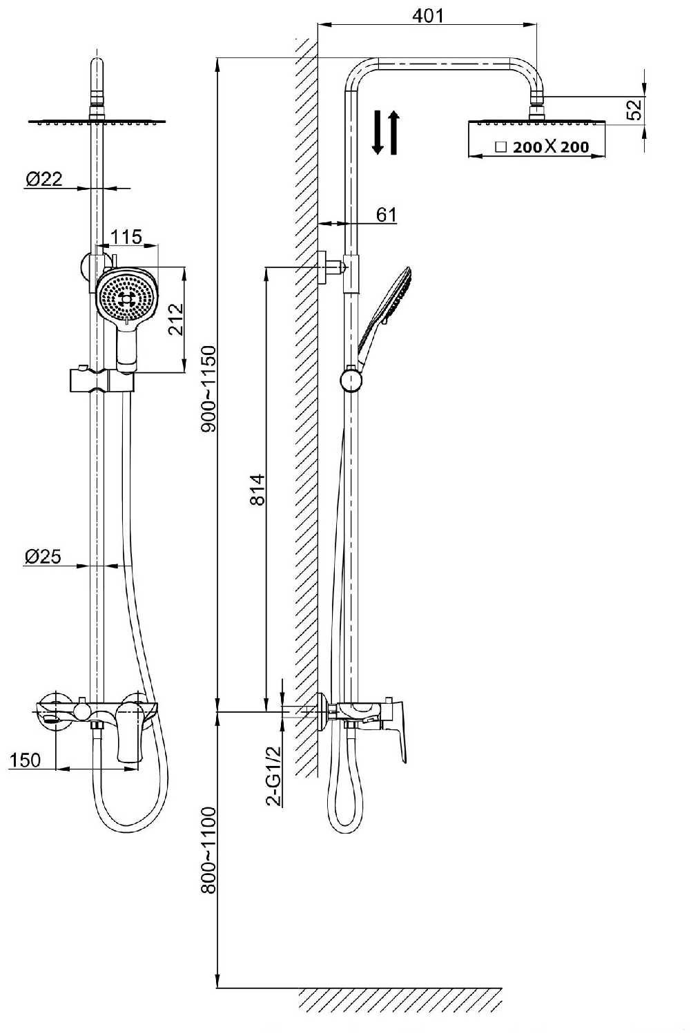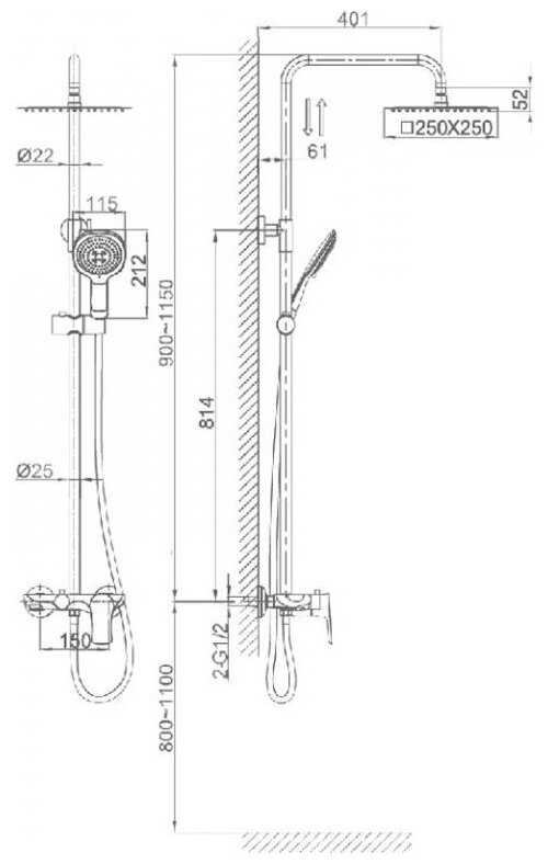 Характеристи D&K Душевая стойка (DA1273701B03)