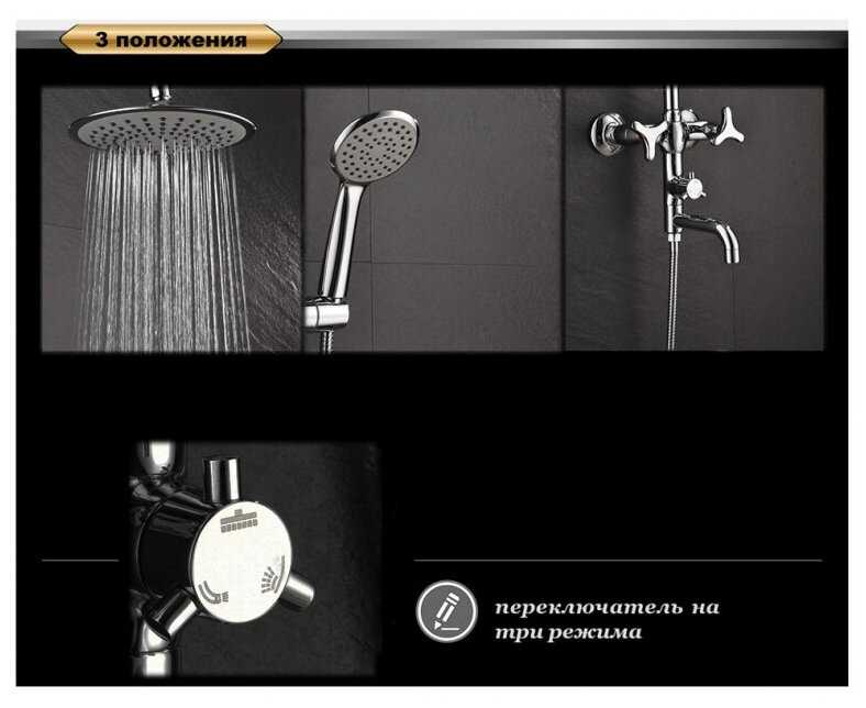 Комплектация : | лейка, шланг, кронштейн, держатель лейки, верхний душ, ручной душ, душевая стойка, набор эксцентриков, смеситель, кронштейн для верхнего душа, переключатель потоков, душевая штанга |