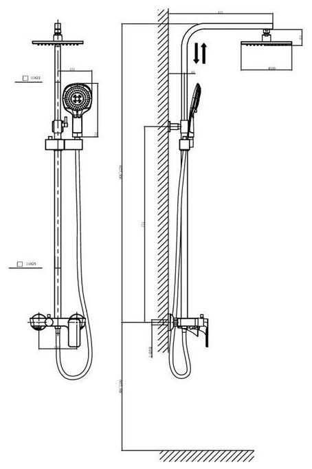 | Дополнительная информация : | высота стойки для душа: 1250 мм, диаметр душевой лейки: 115 мм, длина верхнего душа: 220 мм, ширина верхнего душа: 220 мм |