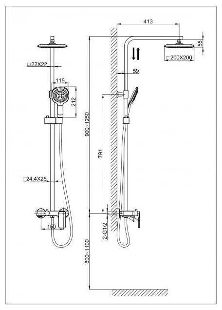 | Высота стойки для душа : | 1250 мм |