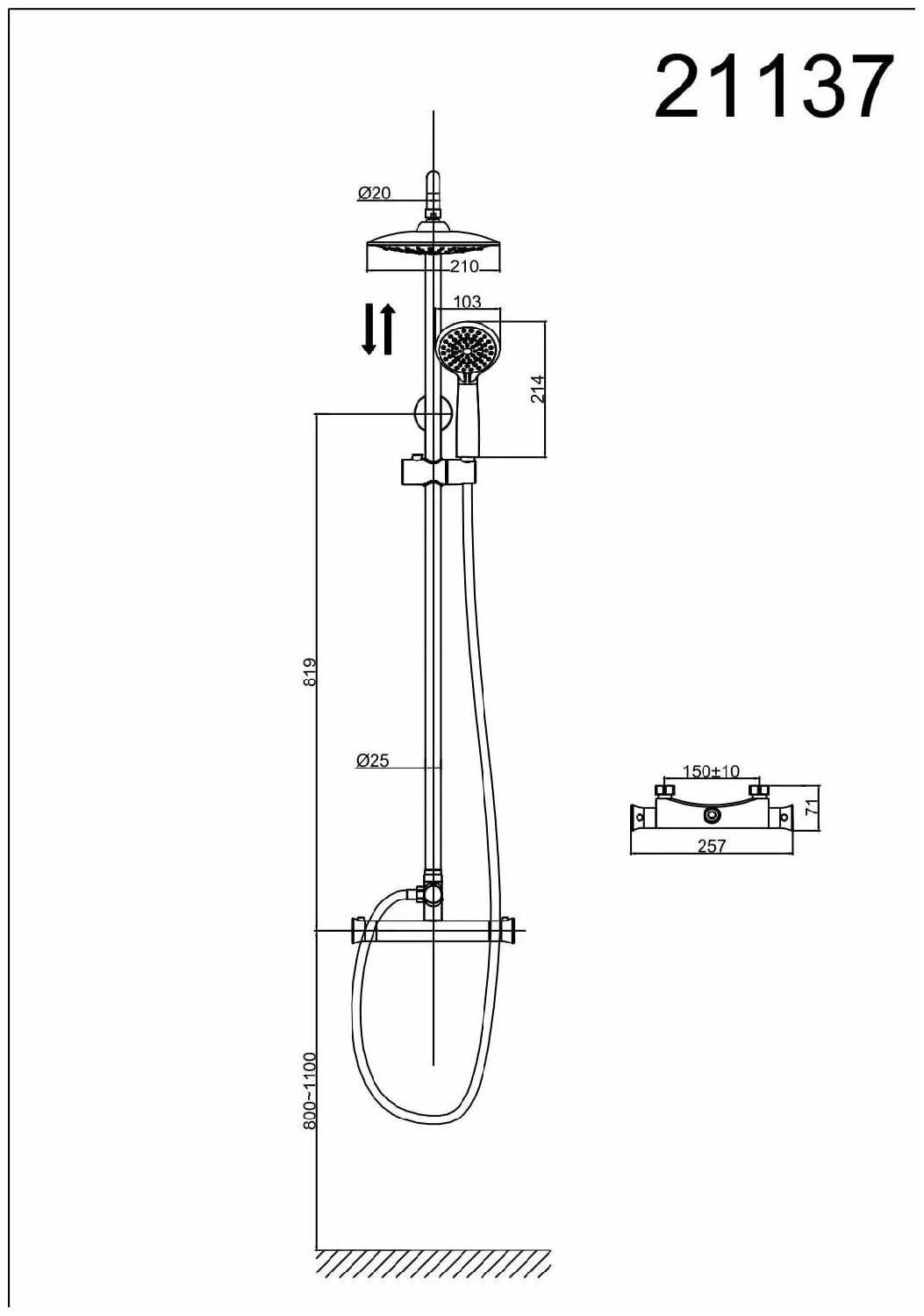 | Дополнительная информация : | диаметр душевой лейки: 103 мм, диаметр верхнего душа: 210 мм |