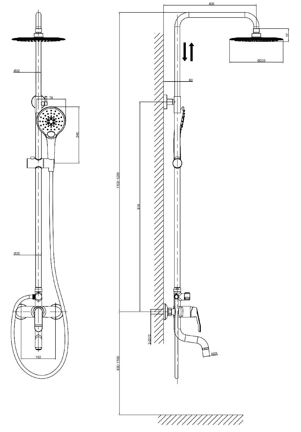 Вес - 439, Гарантия - 5 лет, Оснащение - душевой шланг/переключатель потоков/душевая лейка/держатель для душа/аэратор, Поверхность - глянцевая, Страна - Германия, Исполнение шланга - металлический, Вылет верхнего душасм - 405
