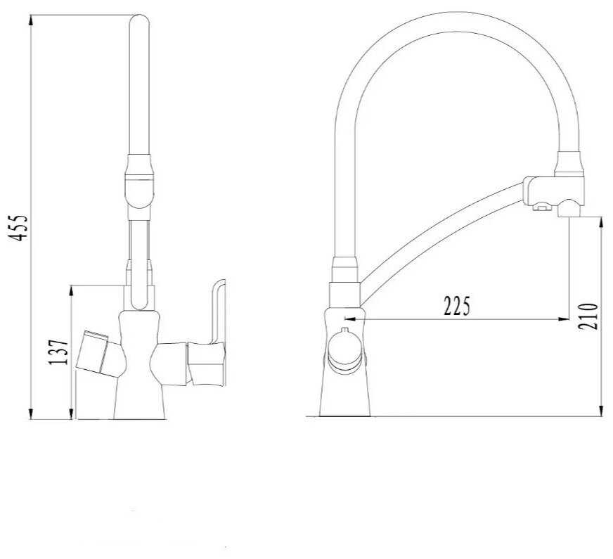 - Комбинированный вывод питьевой и обычной воды через единый излив устраняет необходимость монтажа дополнительного крана, экономя пространство.