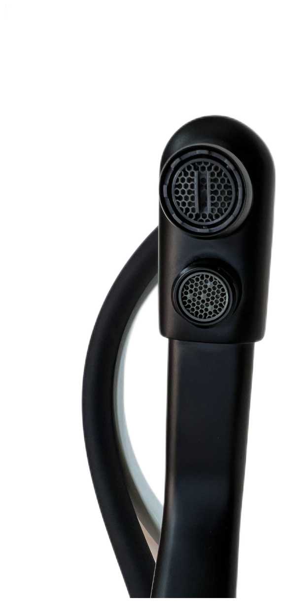 Эстетика и практичность черного покрытия: Глянцевое черное покрытие придает смесителю премиальный вид, гармонично сочетаясь с современными интерьерами, но требует компромисса в эксплуатации: поверхность моментально проявляет водяные разводы, брызги жира и микроцарапины. В зонах жесткой воды известковый налет образует видимый белесый контур на изливе уже после первого использования. Для поддержания безупречного вида необходима ежедневная сухая протирка после контакта с водой. Белая пластиковая вставка в точке крепления шланга создает дисгармонию в монохромном дизайне. Сколы эмали в местах частого механического контакта (особенно вокруг кнопки переключения воды) обнажают светлую подложку, визуально удешевляя продукт. Глубина цвета сохраняется стабильной при отсутствии абразивного воздействия.