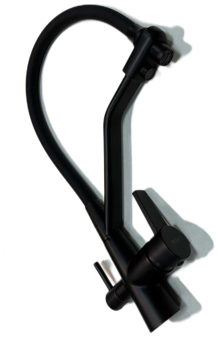 Комбинированная конструкция занимает меньше места, чем раздельные краны для фильтрованной и обычной воды. Компактный излив с регулируемой высотой оптимизирует рабочее пространство. Гибкий шланг не требует дополнительной зоны для маневров при очистке раковины. -