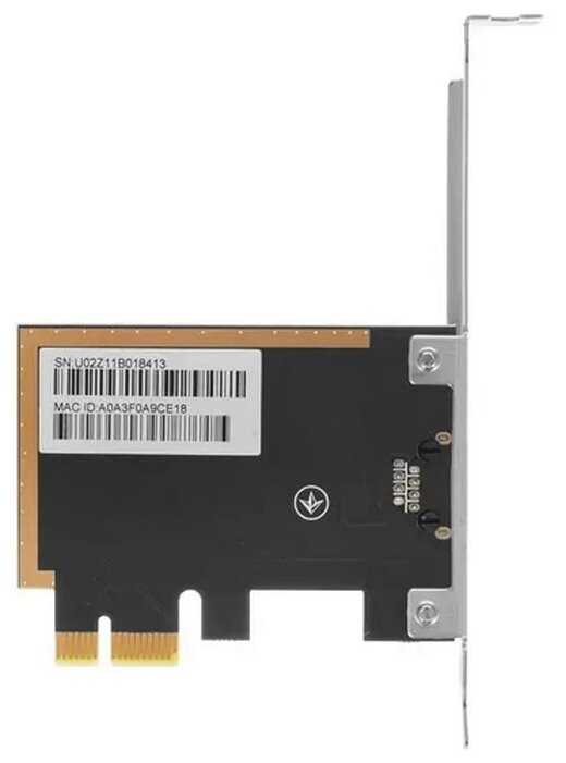 Карта предназначена для слотов PCIe x1 и корректно работает в них, включая старые материнские платы (например, на чипсете Z68). При установке в нижний слот корпуса возможны трудности с извлечением кабеля из-за ориентации разъема RJ-45.