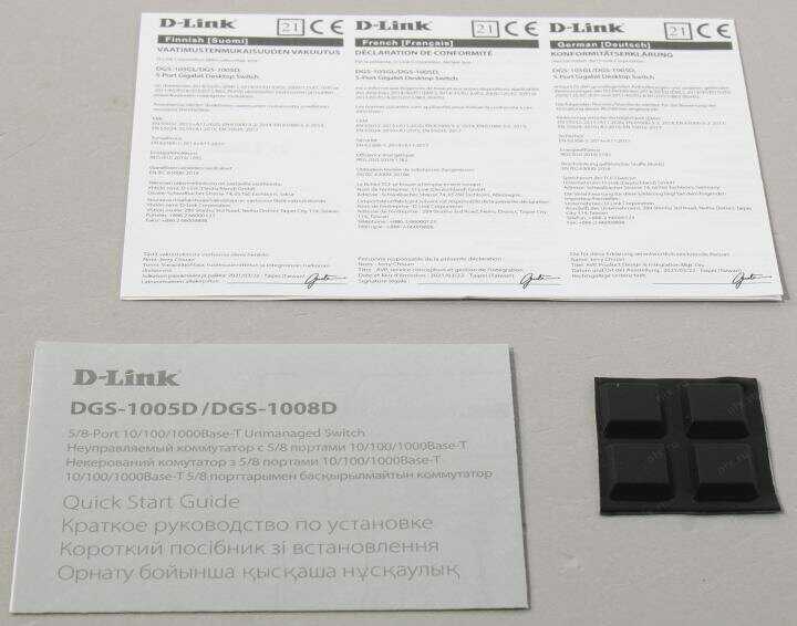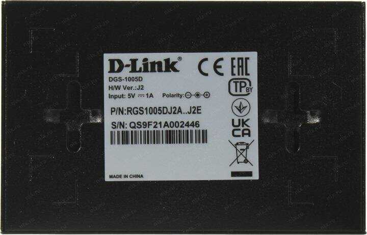 | Дополнительная информация : | коммутатор DGS-1005D - 1 шт, адаптер питания - 1 шт, документация |