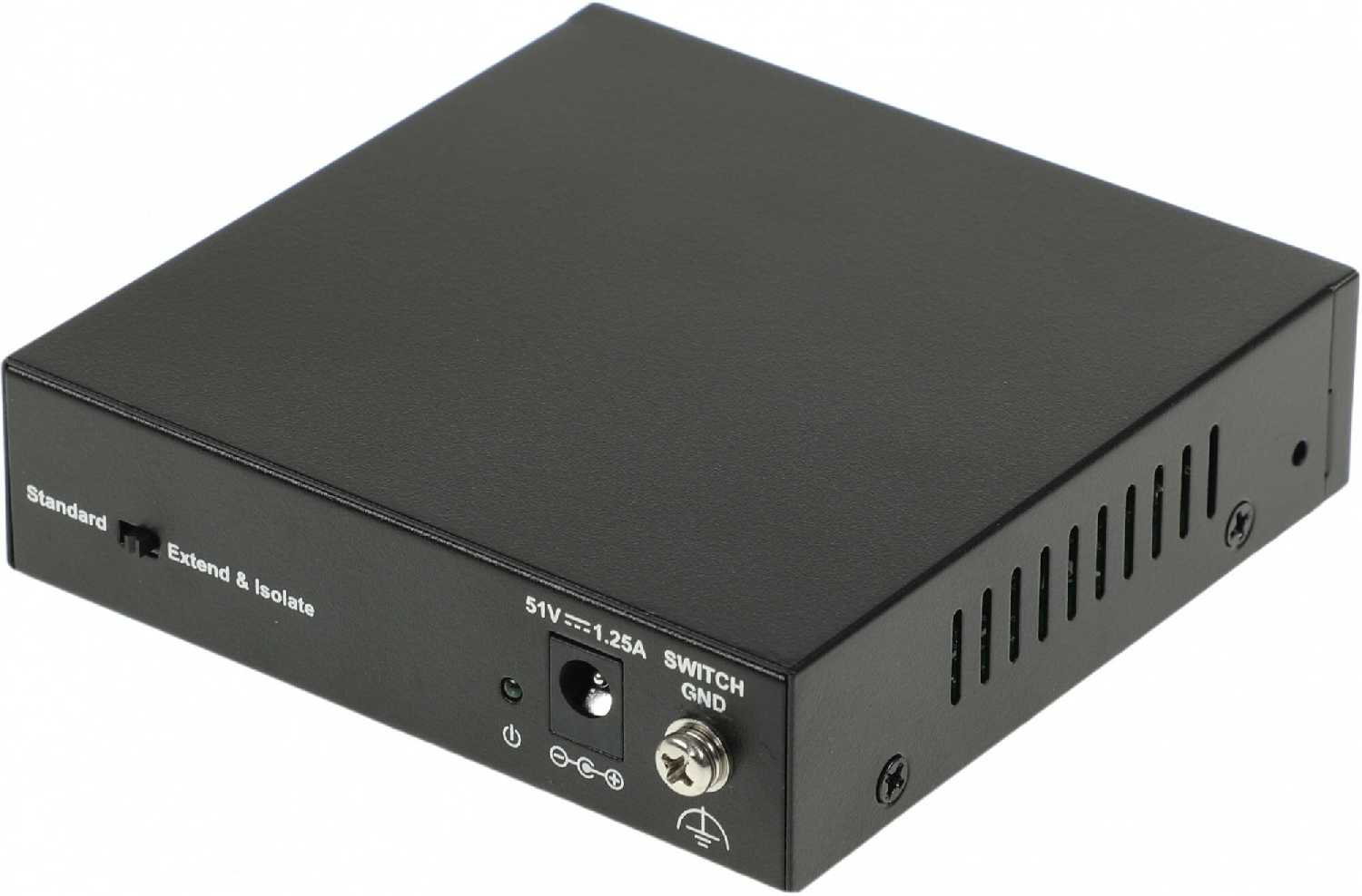 - + Работает. Устанавливал в распред коробку, служит верой и правдой. 4 POE и 2 LAN порта. Очень удобно при монтаже проходняка. Единственное блок питания большой на мой взгляд, но это скорее придирка.