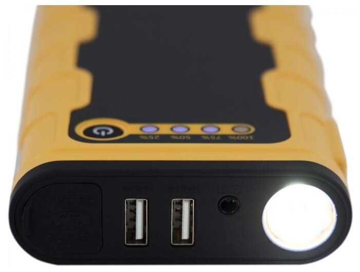 С магазина заряд показывал 75% , хотелось быстрее завести машину после 6 дней простоя в непрекращающихся морозах от -30 до -38. В день покупки морозы упали и днем было-18. Заряд аккумулятора упал за дни морозов и при постоянно оставленной сигнализацией до 8,5в. Даджет про крутил не много двигатель и сам сел. Расстроился, думал что зря купил и выкинул деньги на ветер, но занёс домой и зарядил его до 100%. И вышел снова к машине. Подключил клеммы, загорелась зелёная лампочка, повернул ключ и двигатель завелся моментально, лучше чем от аккумулятора, я был в приятном шоке, после стольких дней простоя при сильных морозах и почти не живом аккумуляторе двигатель завелся на ура. Двигатель 1.8 бензин . В общем советую брать, вещь нужная и может понадобится всегда в нужный момент. Ни кого не надо просить прикурить и чтобы таскали тебя. Заряжайте полностью до 100%при покупке и только тогда пробуйте. Всем удачи на дорогах!