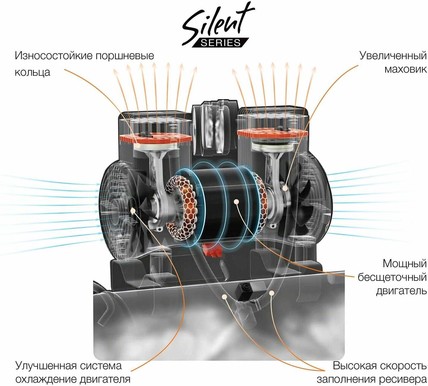 - + Компактный, сделан качественно. Работает тихо, вибраций никаких. Сборка аккуратная, при стравливании воздуха из ресивера, при первой прокачке, никакого мусора из бака не вылетело.