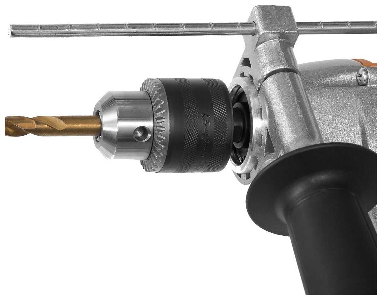 Мощная,патрон ключевой + сверла держит отлично,на вид красивая, приятные тактильные ощущения от корпуса.