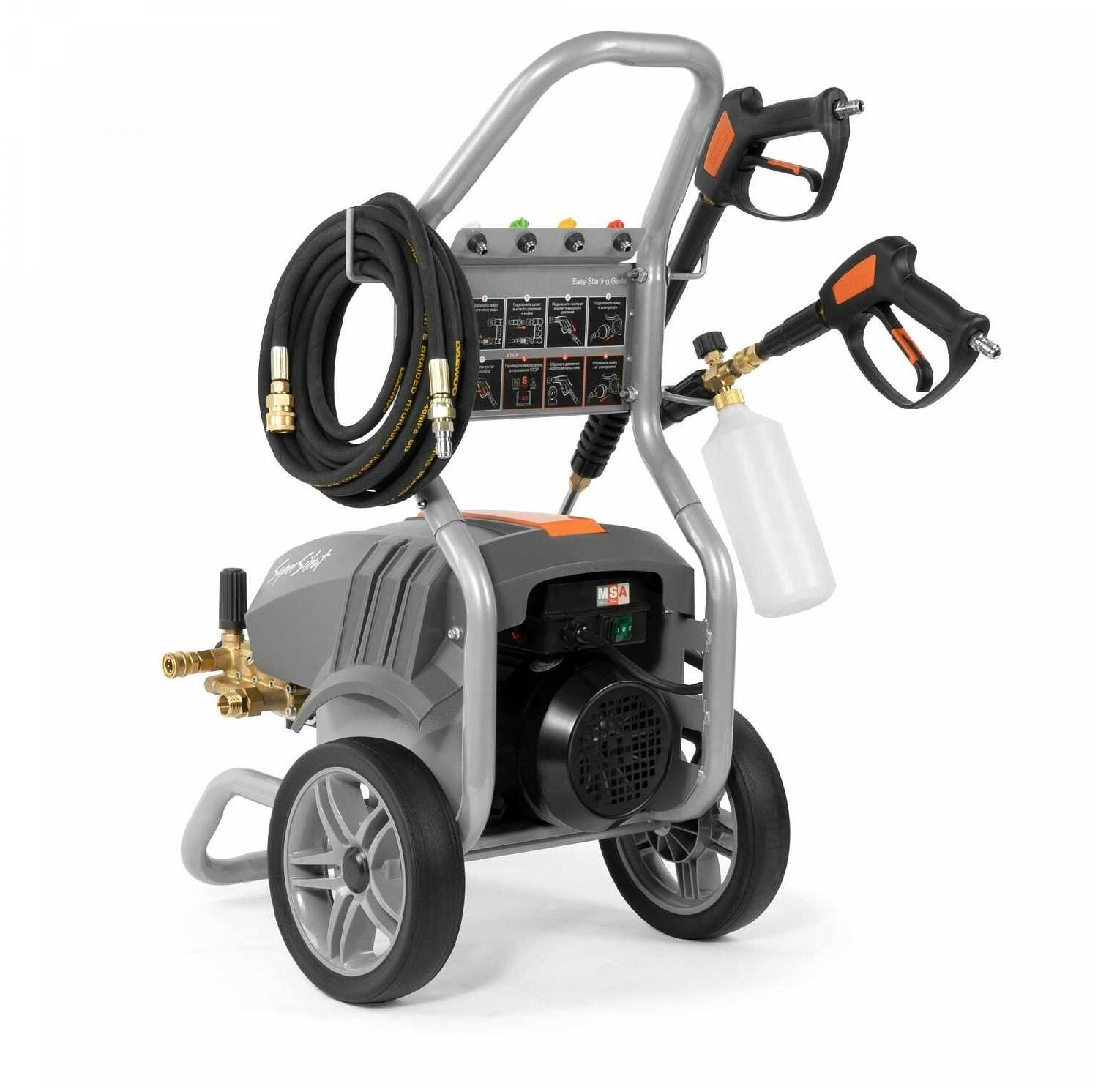 После покупки этой мойки я понял сразу что буду её дорабатывать. Первое с чего я начал это установка барабана с шлангом 25 метров и авто намодчиком это намного удобнее заводского шланга. Потом установка дополнительных колёс, совсем было не удобно передвигать её , конструкторы сильно ошиблись установив родные колеса не на оси где ручка. Мойка действительно очень мощная тихая и тяжолая так как в ней стоит асинхронный двиготель на 3 кВт и латунная помпа. Единственное что мне не понравилось это то чтобы установить пено генератор нужно скидывать давление воды с мойки за это минус звезда. Керхер К670 по сравнению с ней игрушка. Если готовы потратится и доработать получится то что нужно для работы в доме от 220в ⭐⭐⭐⭐⭐