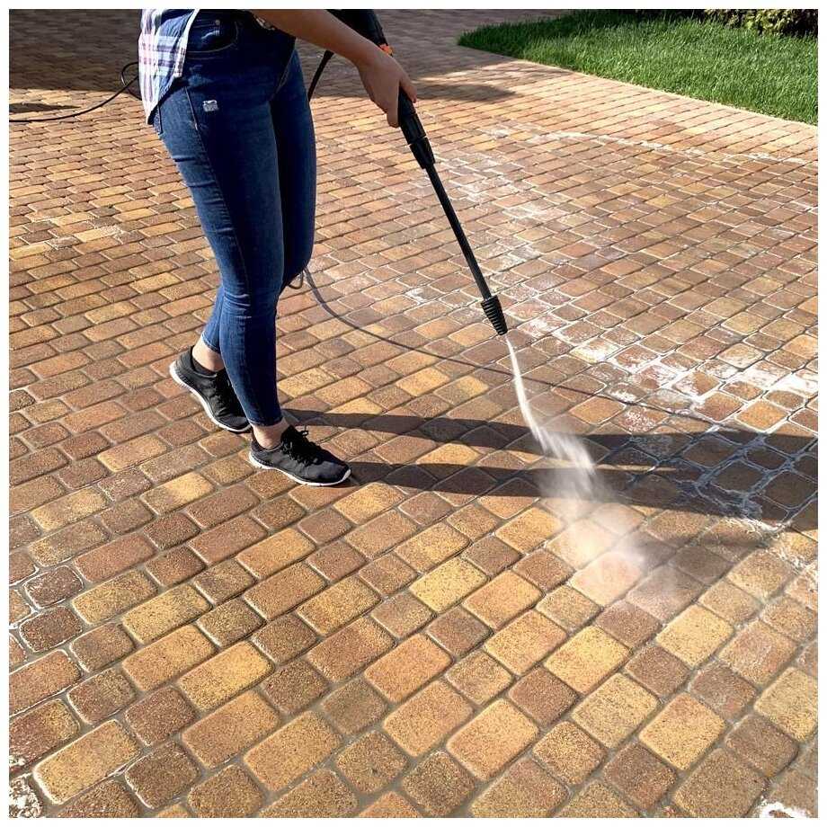 Грязевая фреза отлично справляется с дорожками, отмосткой, забором и плиткой, сбивая засохшую грязь и мох на раз. Пользователи хвалят мойку за отбеливание отмостки от листьев и грязи, а также чистку фундамента с плиткой. С пеной сайдинг и дом светлеют после зимы. Для сильно въевшихся загрязнений полезна узкая струя. Напор достаточен для дачных работ, включая низ забора после дождя. -