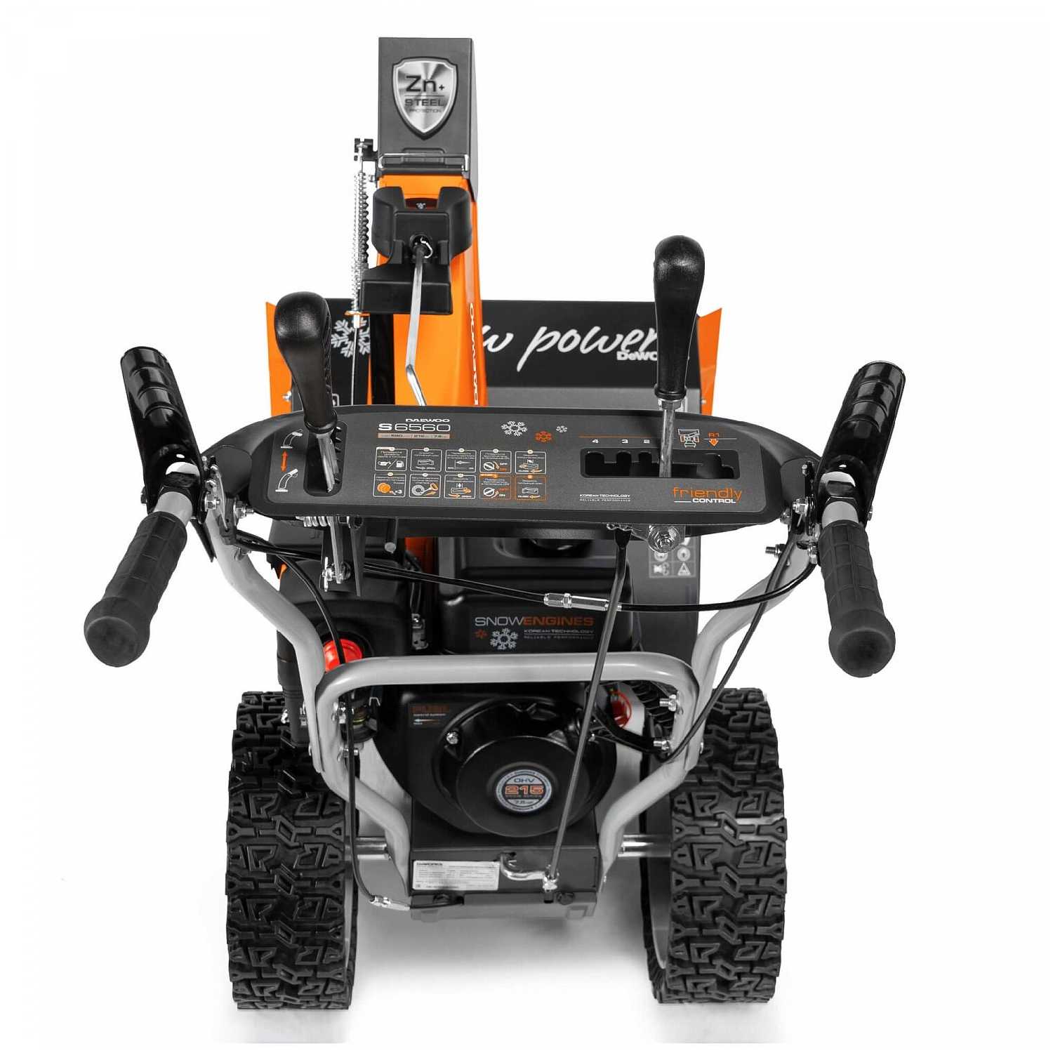 - + Хорошо выглядит – серьезно. Двигатель зимний, колеса бескамерные. Рукоятки блокируются и одна рука освобождается, ей удобно поворачивать трубу и дальность выброса настраивать. Мощный, не сильно тяжелый