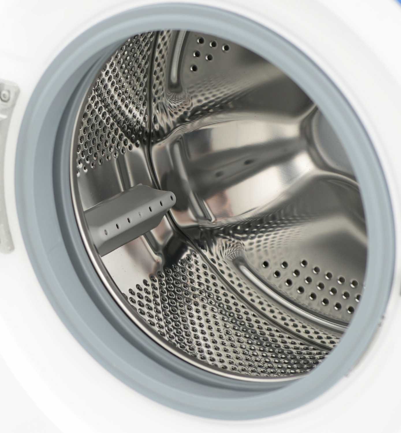 - Интеллектуальная балансировка барабана предотвращает смещение даже при неравномерной загрузке, хотя на это требуется дополнительное время.