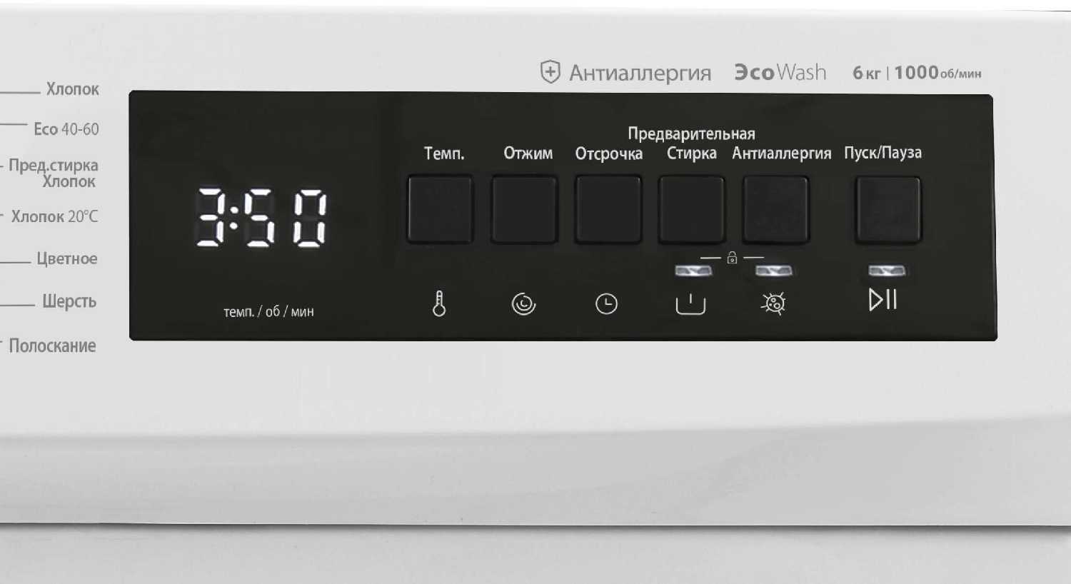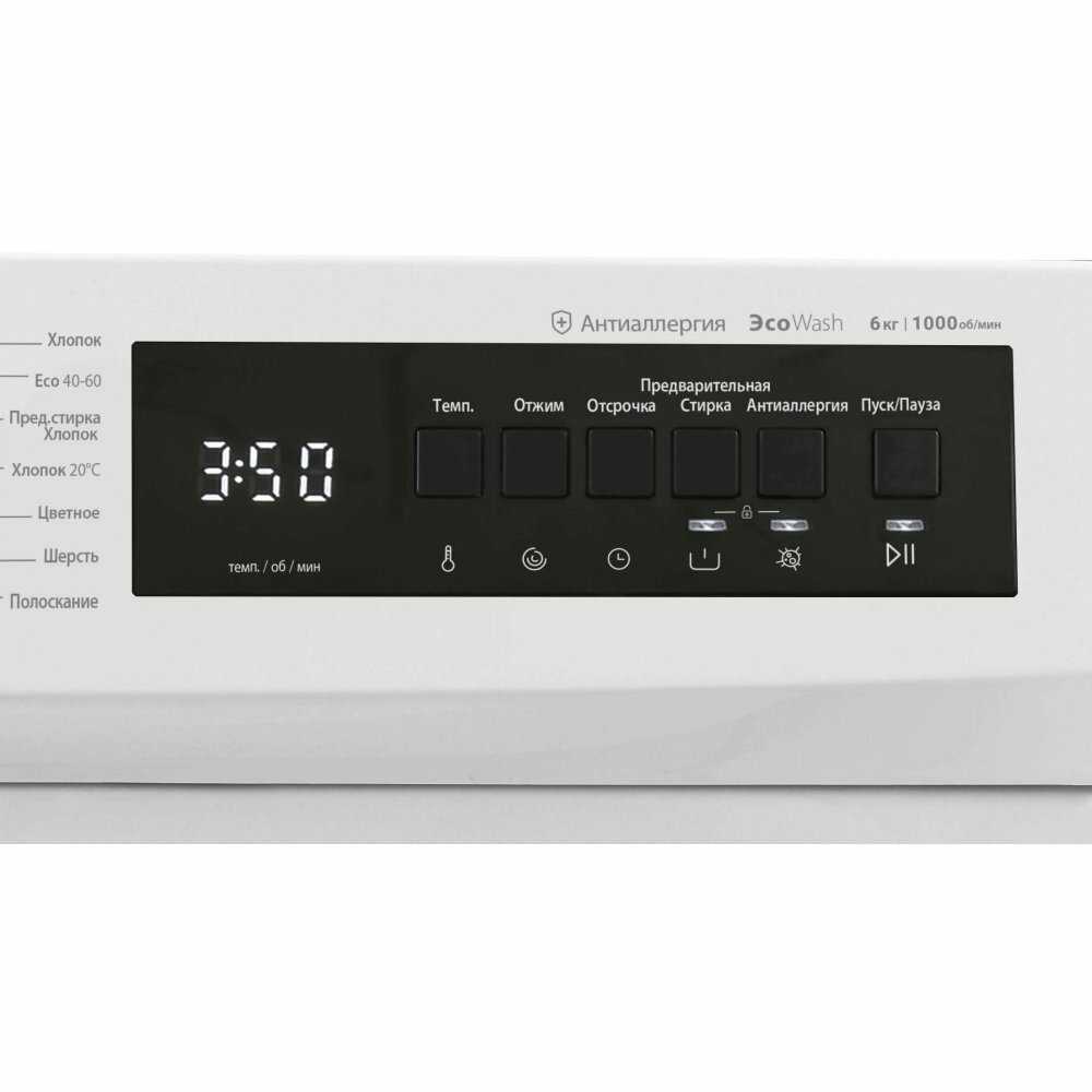 - Режим «Антиаллергия» обеспечивает тщательное выполаскивание химикатов.