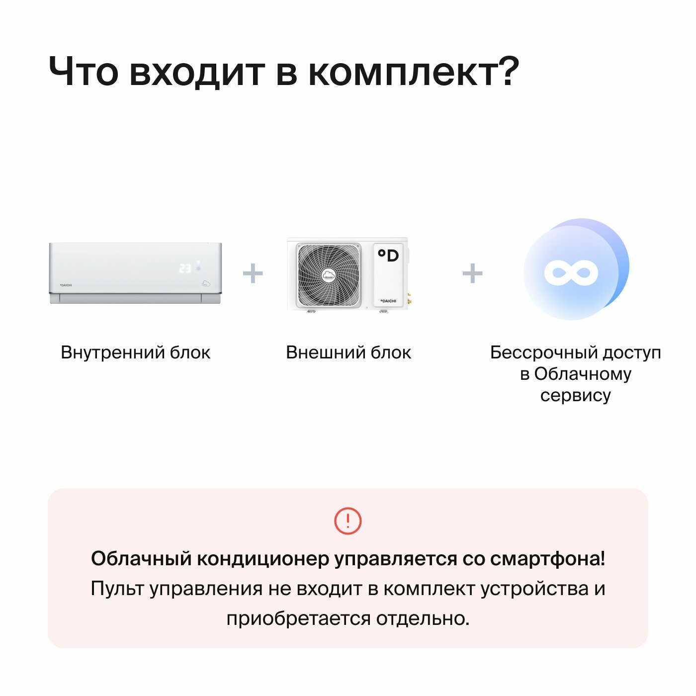 | Подробная комплектация : | Внешний блок, внутренний блок. Пульт ДУ не входит в комплектацию! Управление через приложение на смартфоне. |