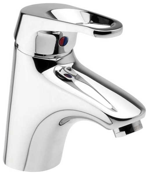 Ручка классная, с отверстием внутри. Не выскальзывает. Небольшой, как раз на маленький умывальник...