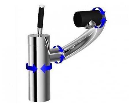 - Регулируется в трех плоскостях: вверх-вниз, поворот вокруг оси, наклон аэратора.