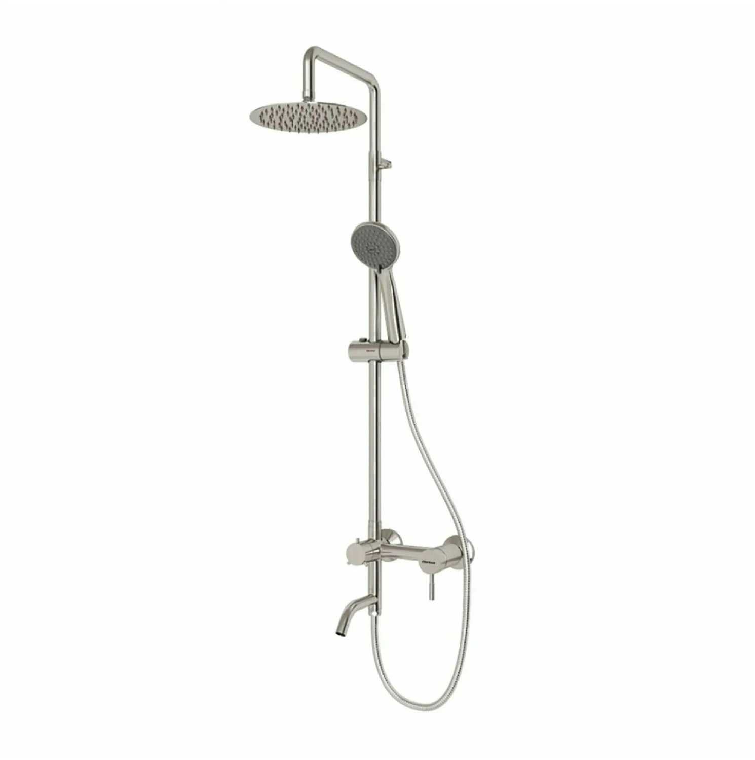 Обратите внимание, что система высотой всего 120 см. Для установки в ванной не достаточно, требуется покупка удлинителя. Идеально подошёл Ledeme RL 77505 нержавеющая сталь.