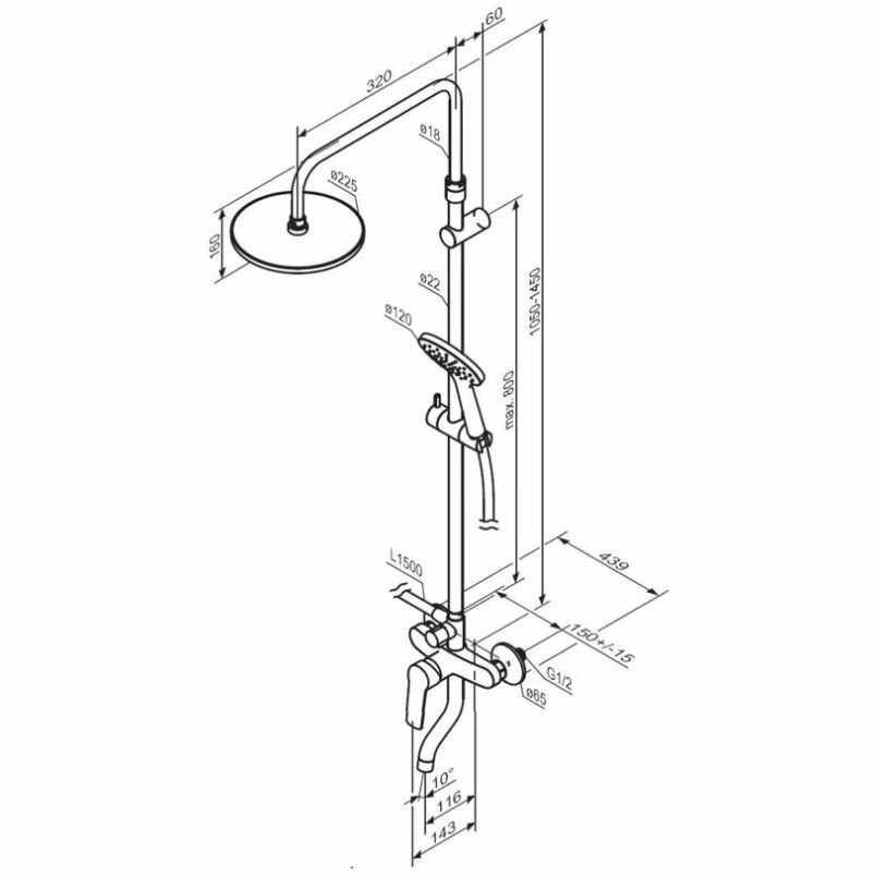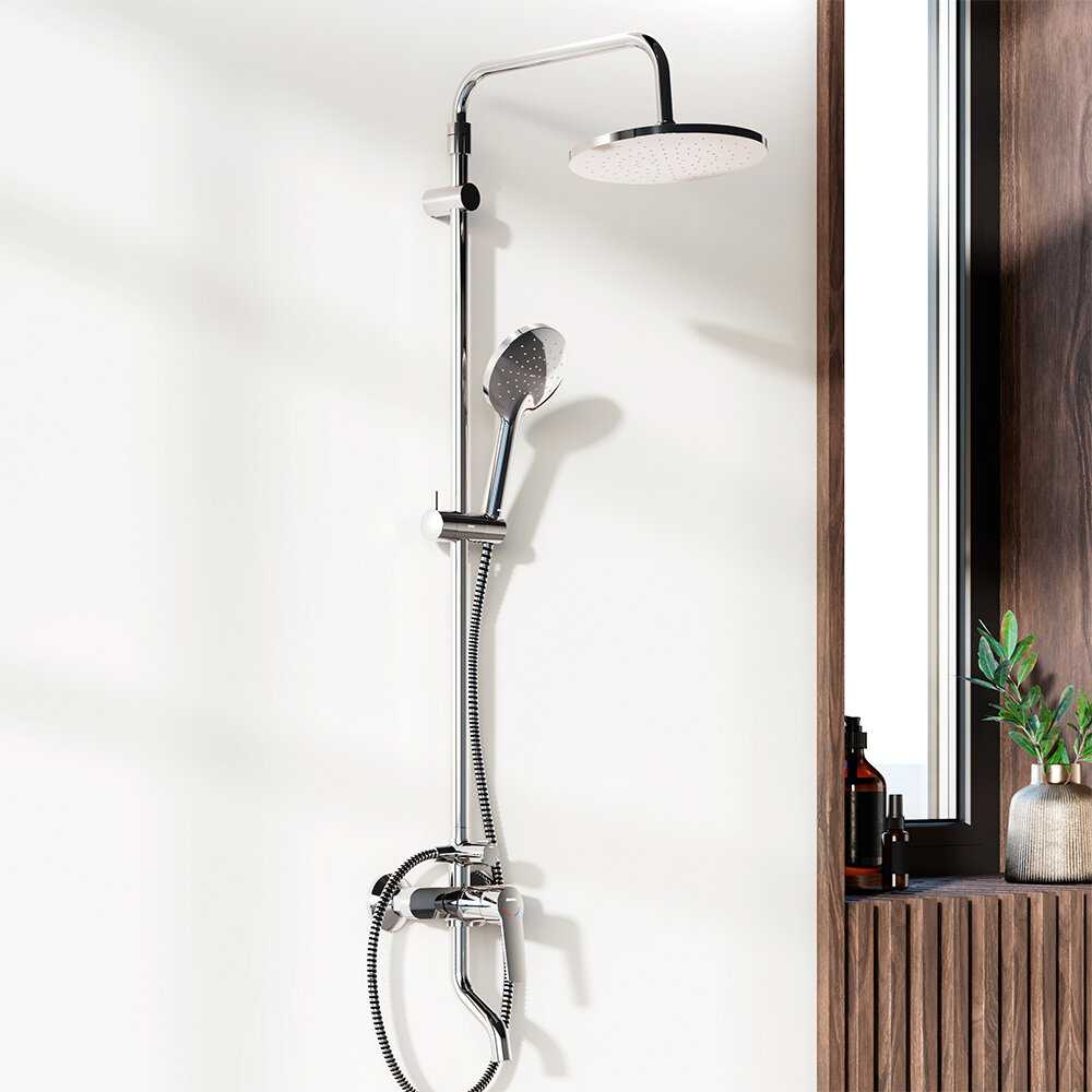 Комплектация : | верхний душ, держатель лейки, душевая стойка, душевая штанга, кронштейн для верхнего душа, лейка, ручной душ, смеситель, шланг, эксцентрик |