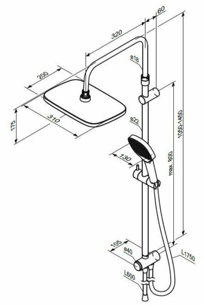 | Комплектация : | верхний душ, держатель лейки, душевая стойка, душевая штанга, лейка, ручной душ, шланг |