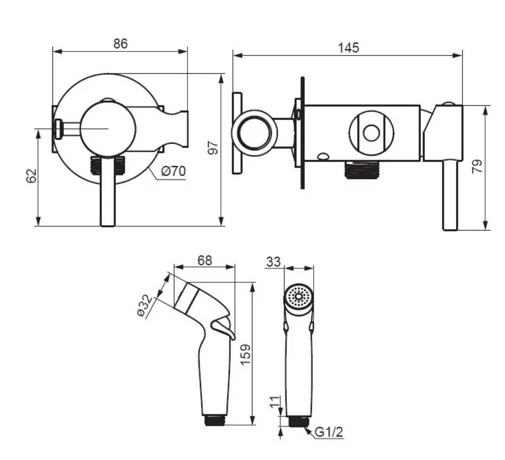 - + Легко подключается, удобная регулировка температуры и напора, хорошая длина душа, материалы качественные, есть возможность перекрыть поток воды переключателям прямо на лейке душа.