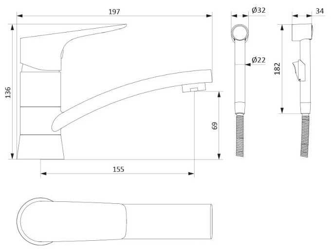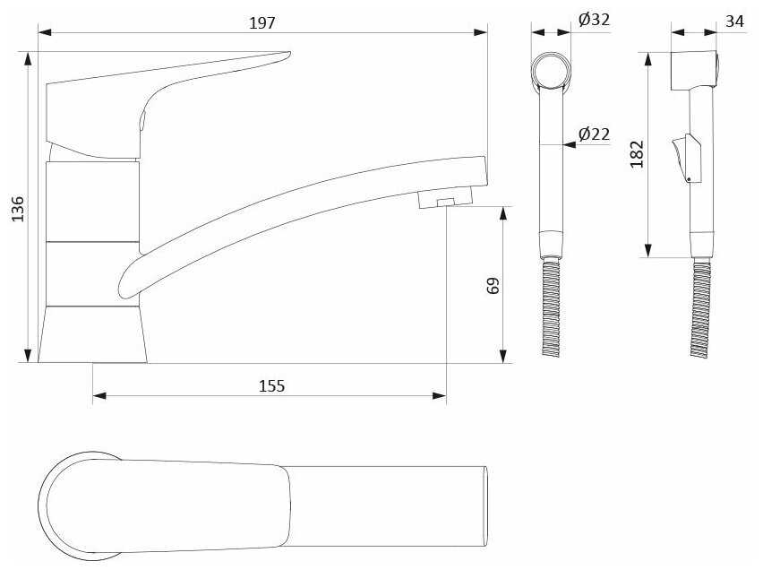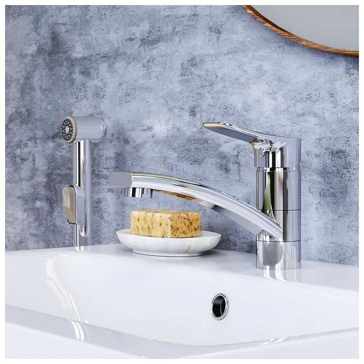 - + единственный в продаже смеситель на раковину с гиг.душем и поворотный одновременно