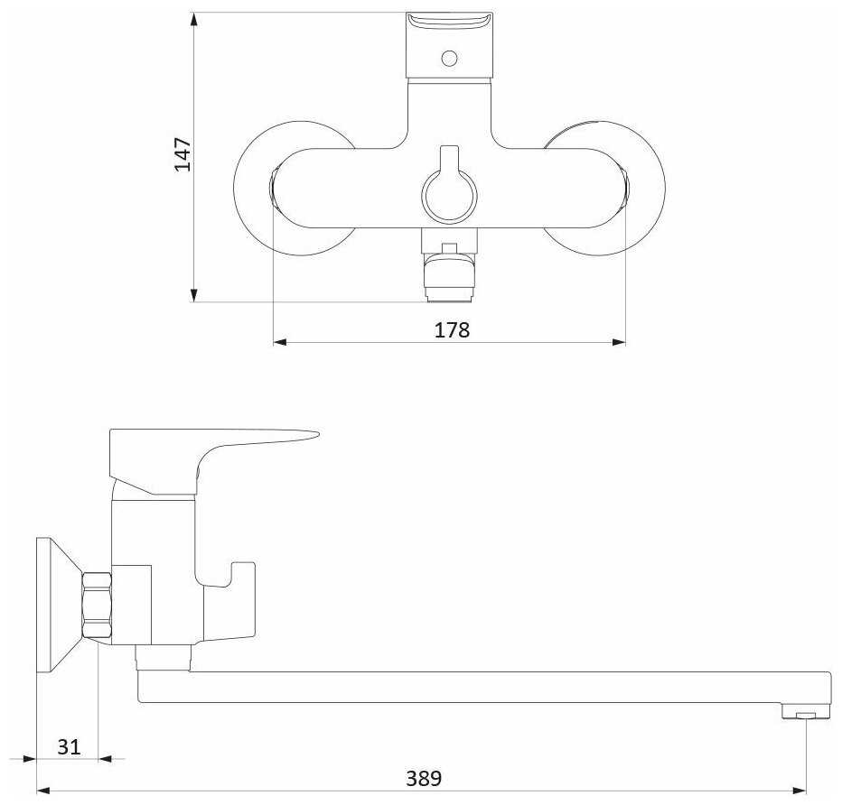 | Особенности : | S-образные эксцентрики, аэратор, держатель душевой лейки, защита от скручивания, поворотный излив |
