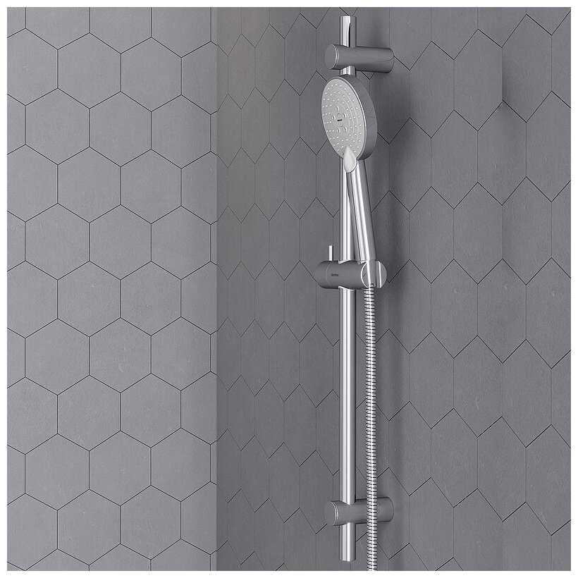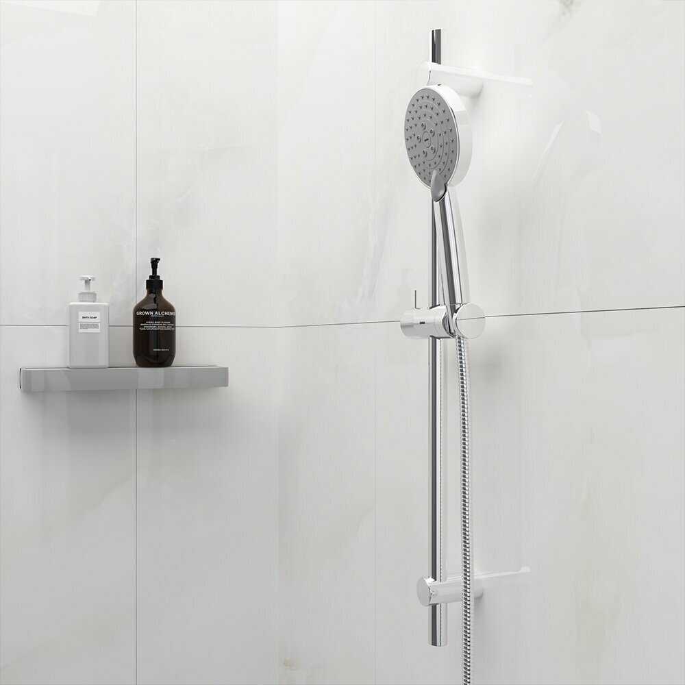 Особенности : | антиизвестковое покрытие, регулируемый верхний душ, защита от скручивания, держатель душевой лейки |