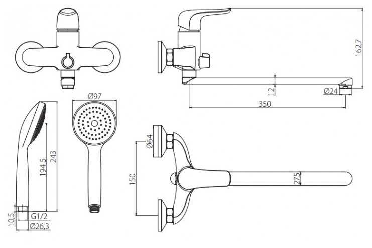 | Комплектация : | верхний душ, держатель лейки, дивертор, душевая стойка, душевая штанга, кронштейн, лейка, настенный держатель, ручной душ, смеситель, шланг |