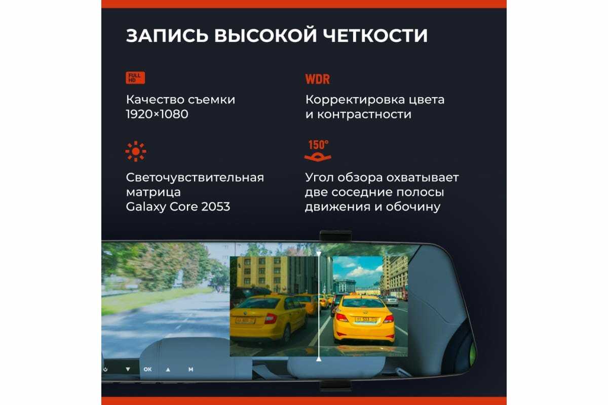 Компактный видеорегистратор с креплением-зеркалом, не мешает обзору и занимает мало места. Качество записи хорошее, номера читаются четко при любом освещении. Управление простое, меню удобное. Запись запускается автоматически, без лишних настроек. вай фай позволяет легко скачивать ролики