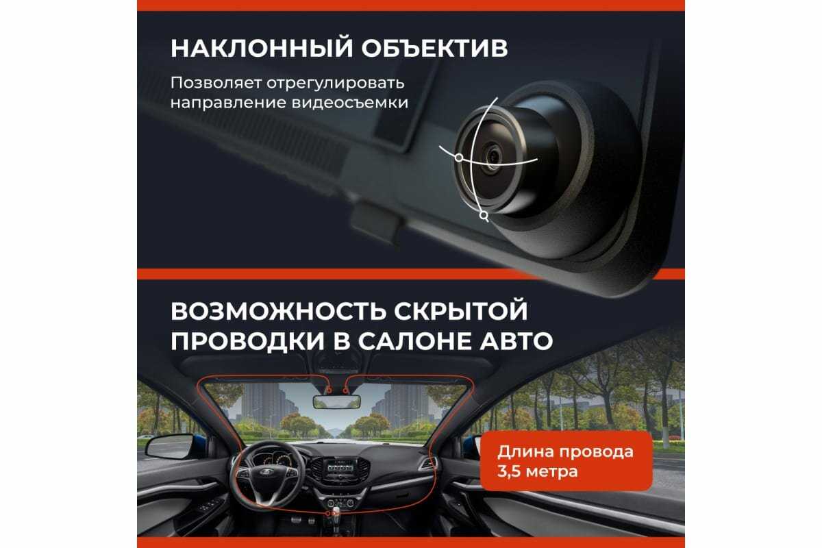 - Компактный форм-фактор и удобное крепление на штатное зеркало: