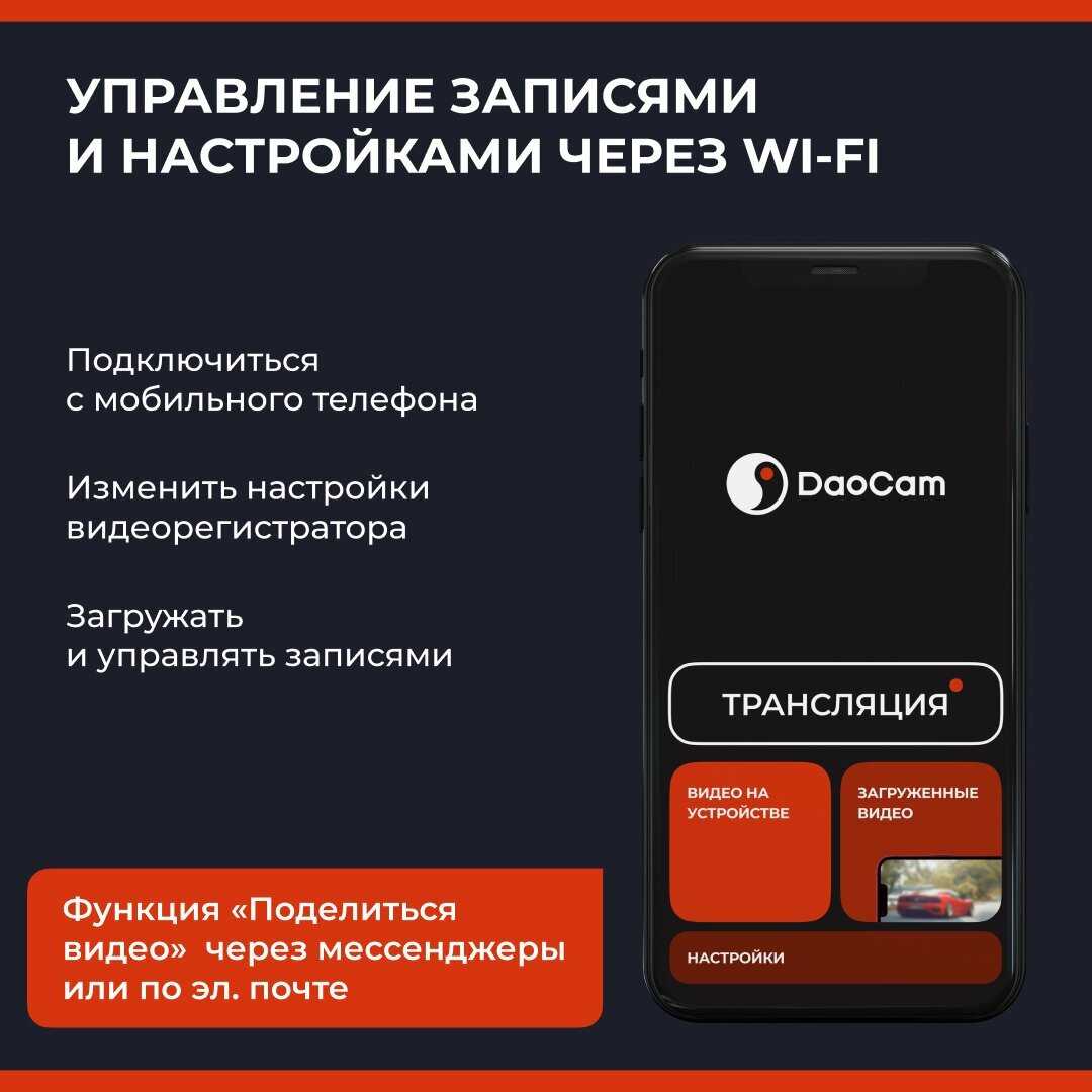 - Через Wi-Fi можно скачивать записи напрямую на смартфон, просматривать трансляцию в реальном времени и обновлять прошивку.