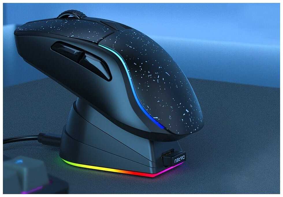 RGB подсветка док-станции и мыши очень приятные. Мышь настраивается подсветка только через специальное ПО, которое необходимо скачать с сайта Dareu. Подсветка док-станции имеет несколько режимов, но не настраивается по вашему желанию, при необходимости ее можно отключить, несколько раз нажав на кнопку внизу.