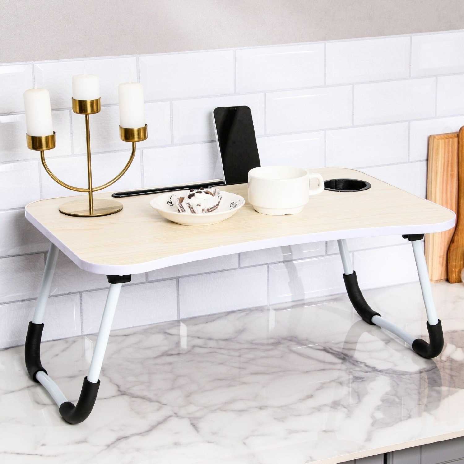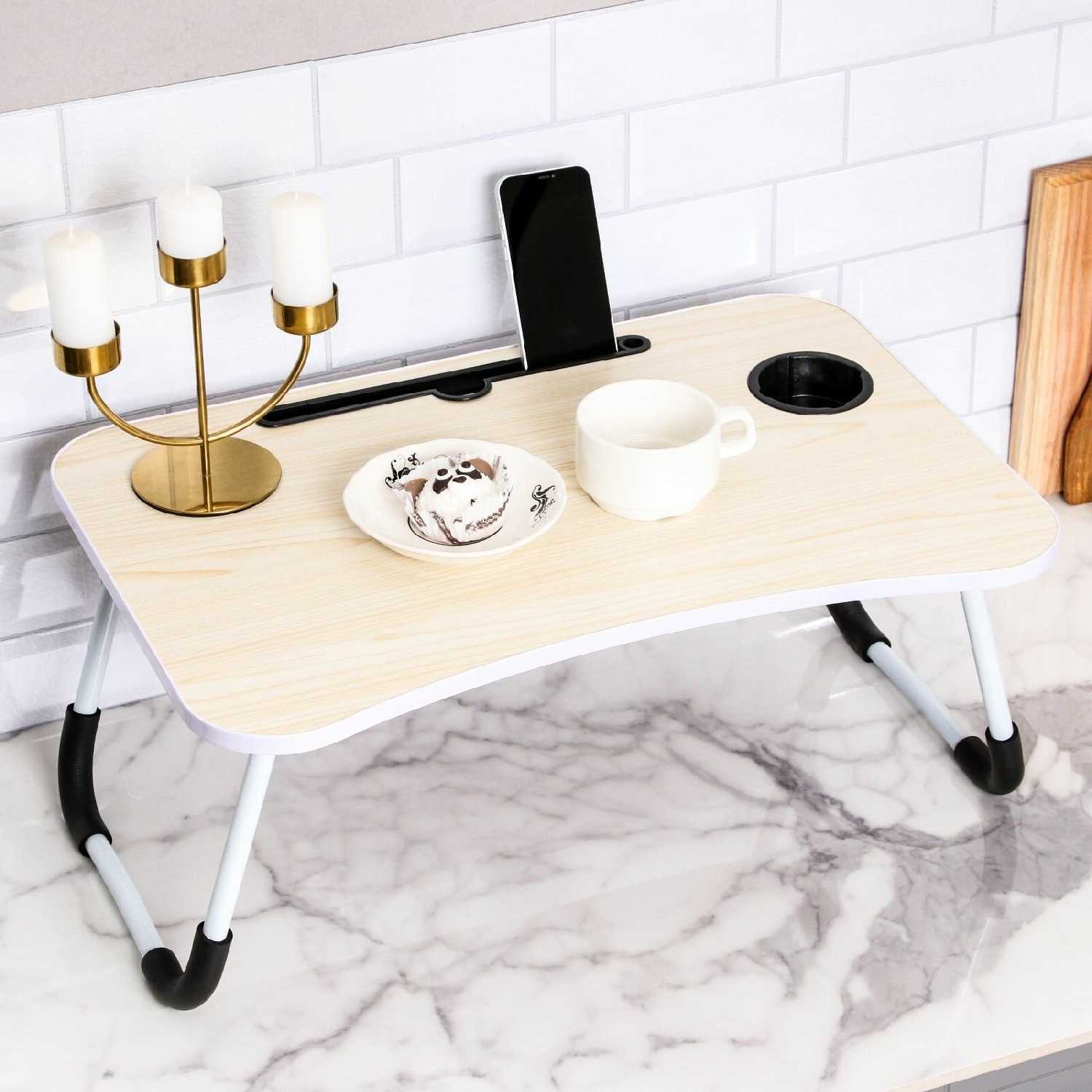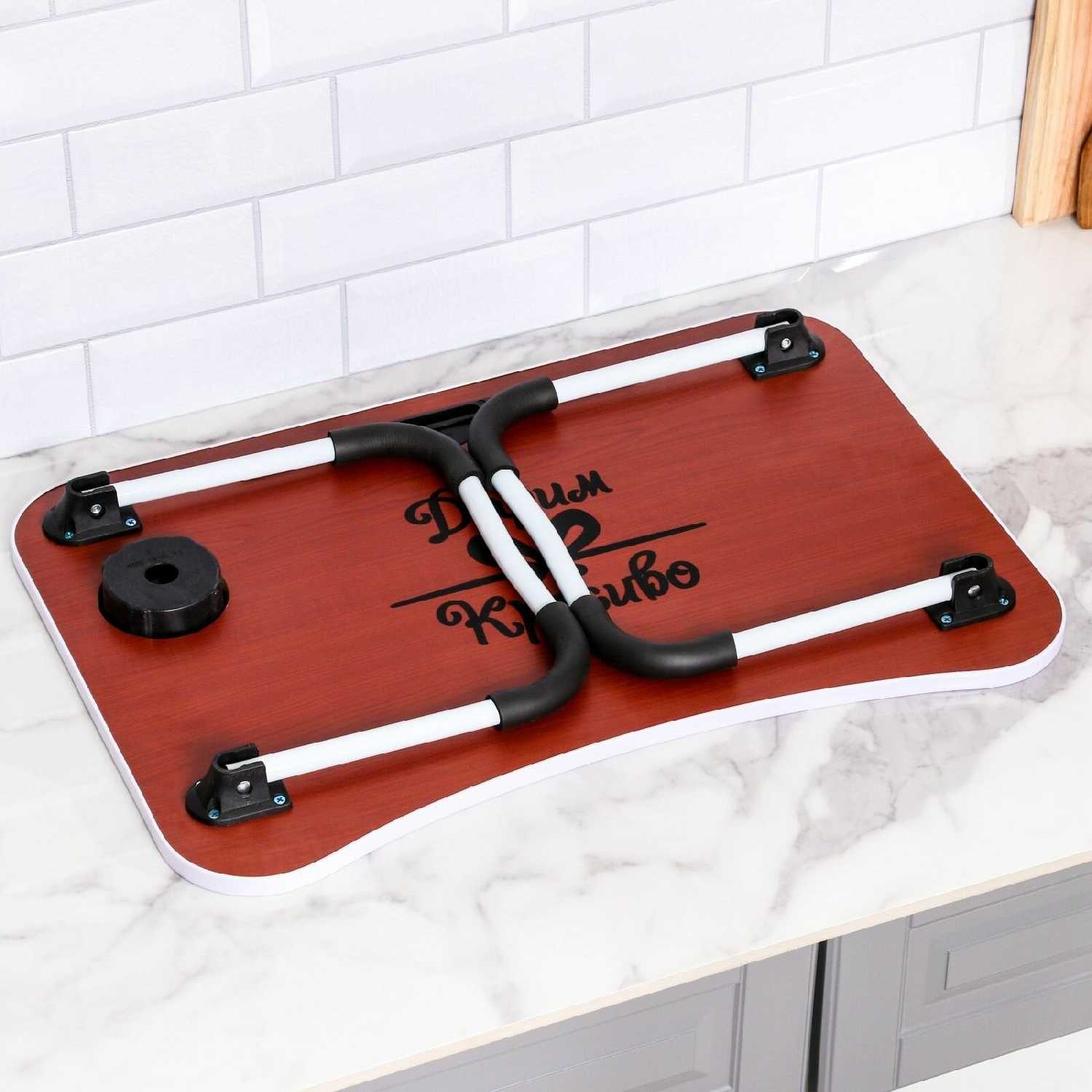 - + Красивый столик, качественная работа, удобно сидеть с ним на кровати из-за выемки впереди. По размеру подошел.