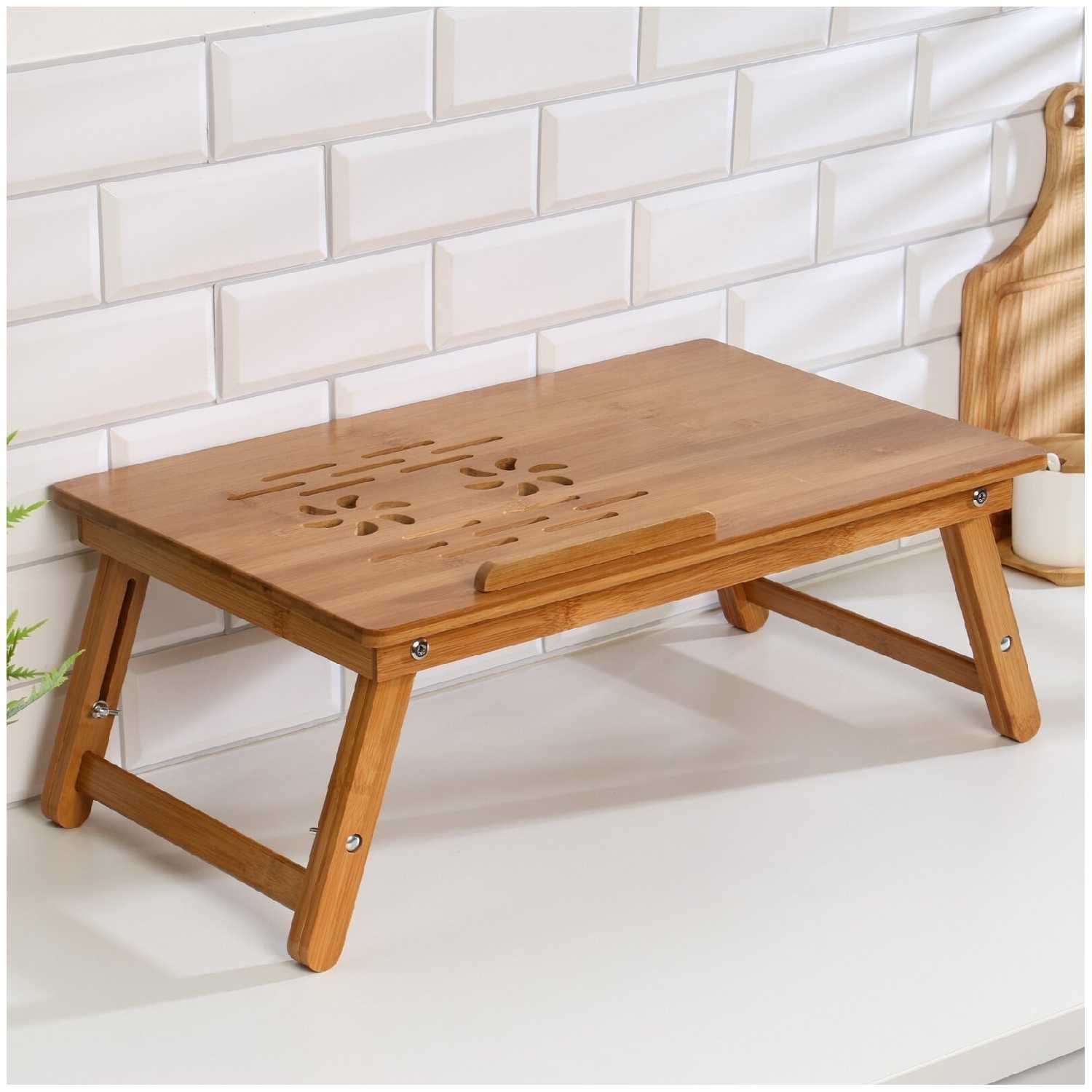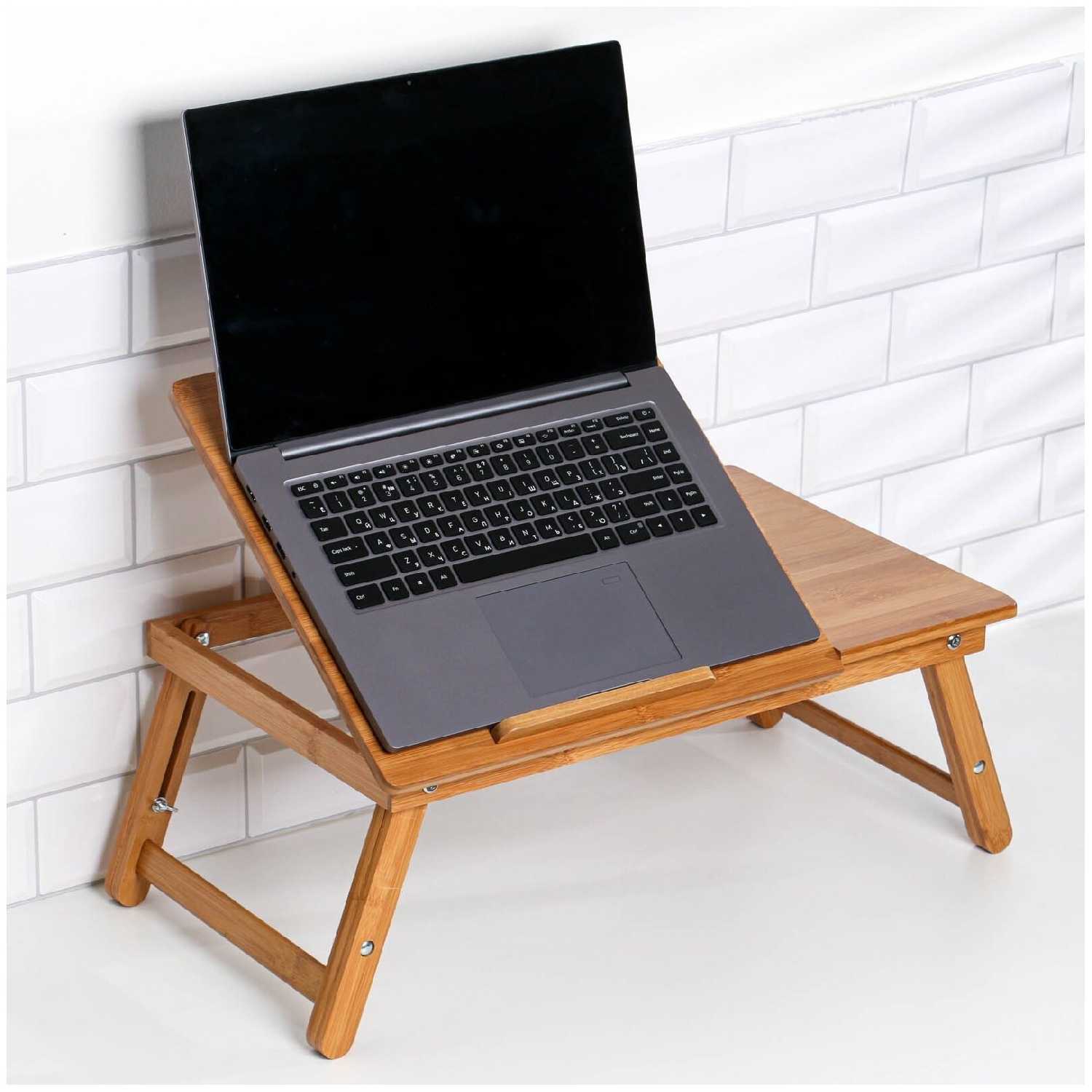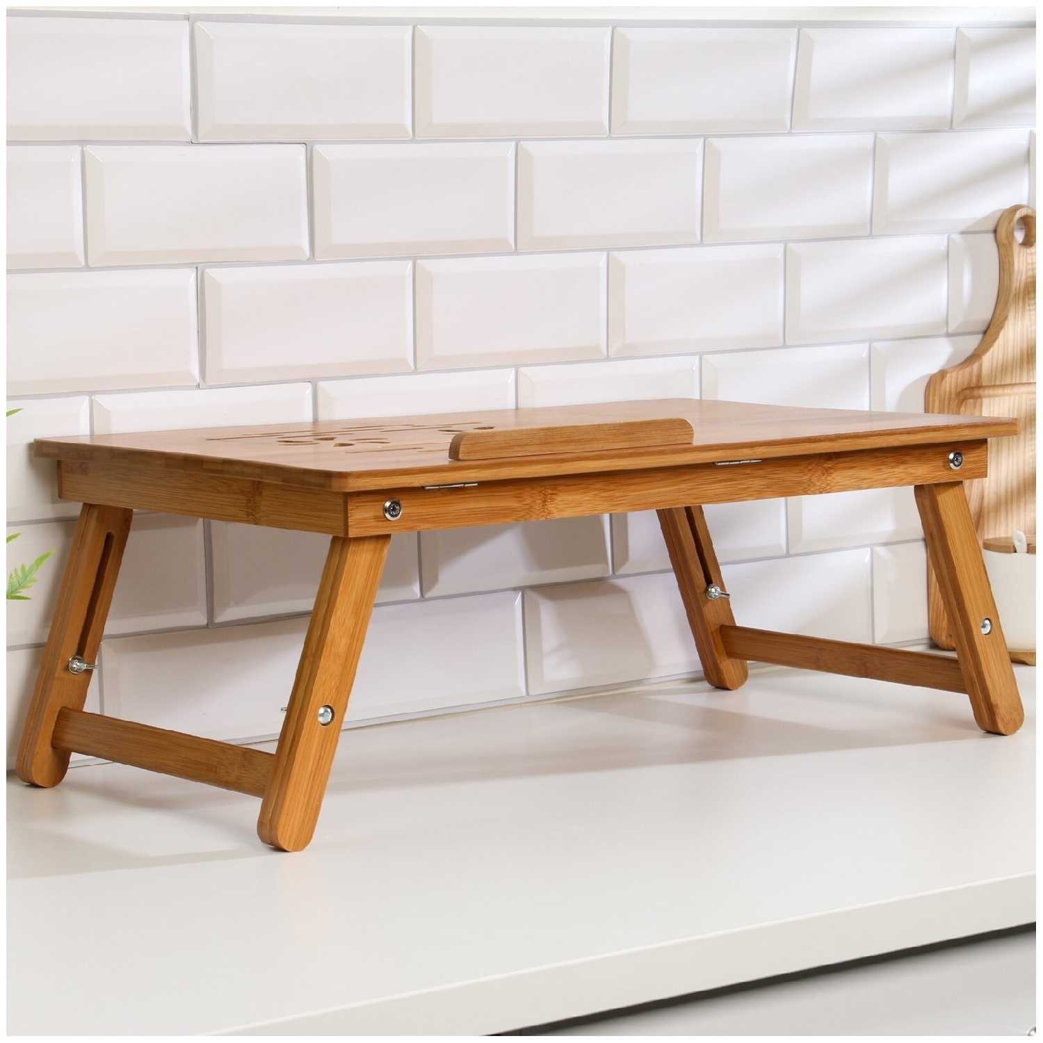 Дополнительная информация : | Столик для ноутбука, выполненный из бамбука, с прямоугольной столешницей, высота 20 см, размер 30х50 см, подходит для завтрака и работы с ноутбуком. |