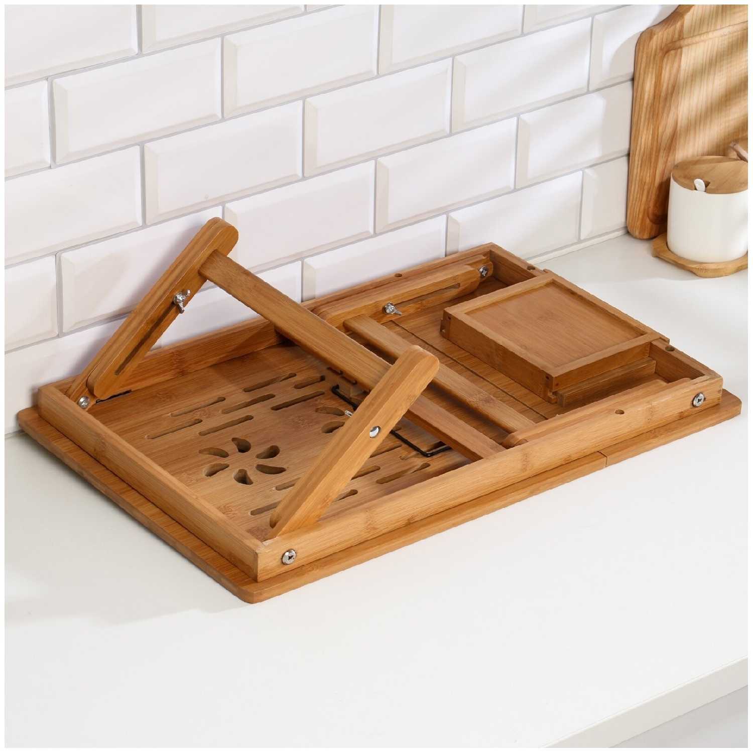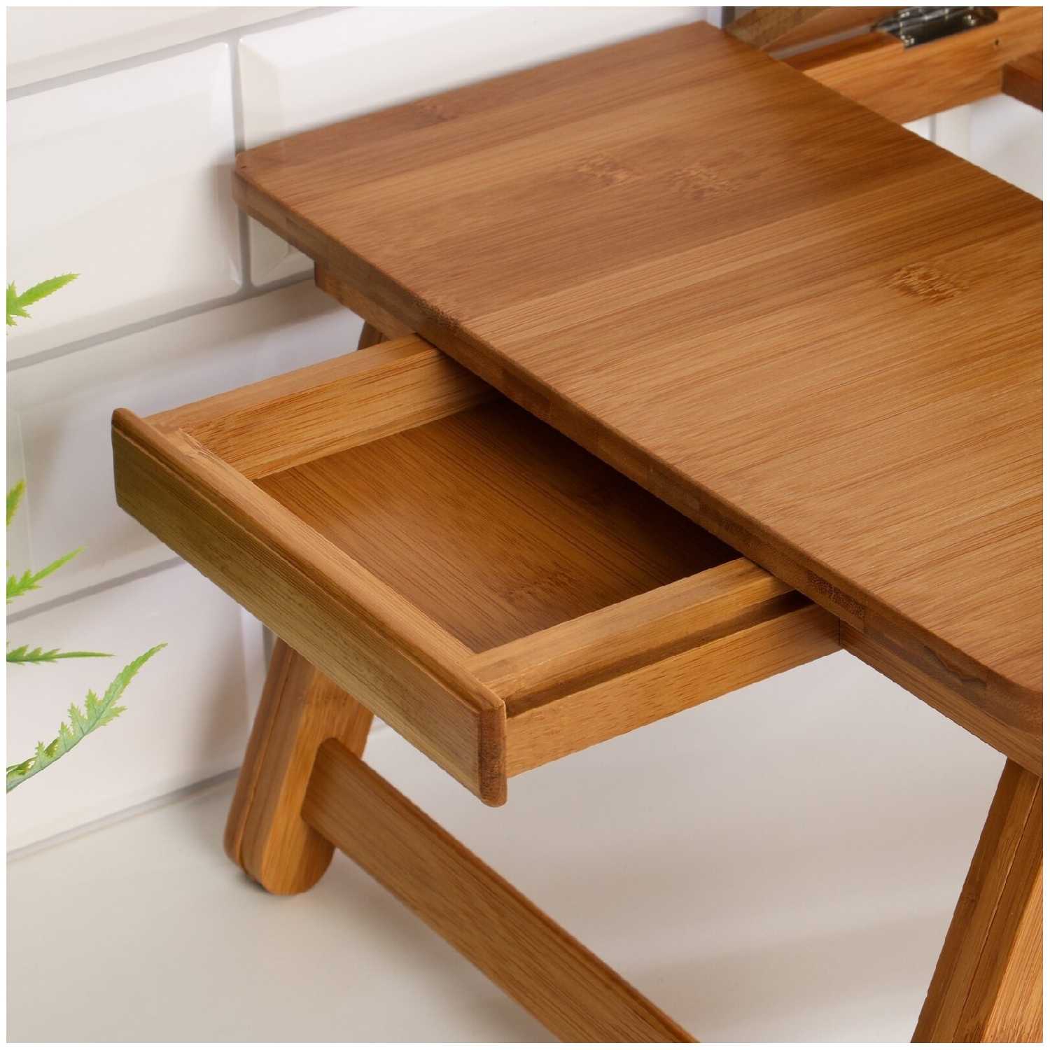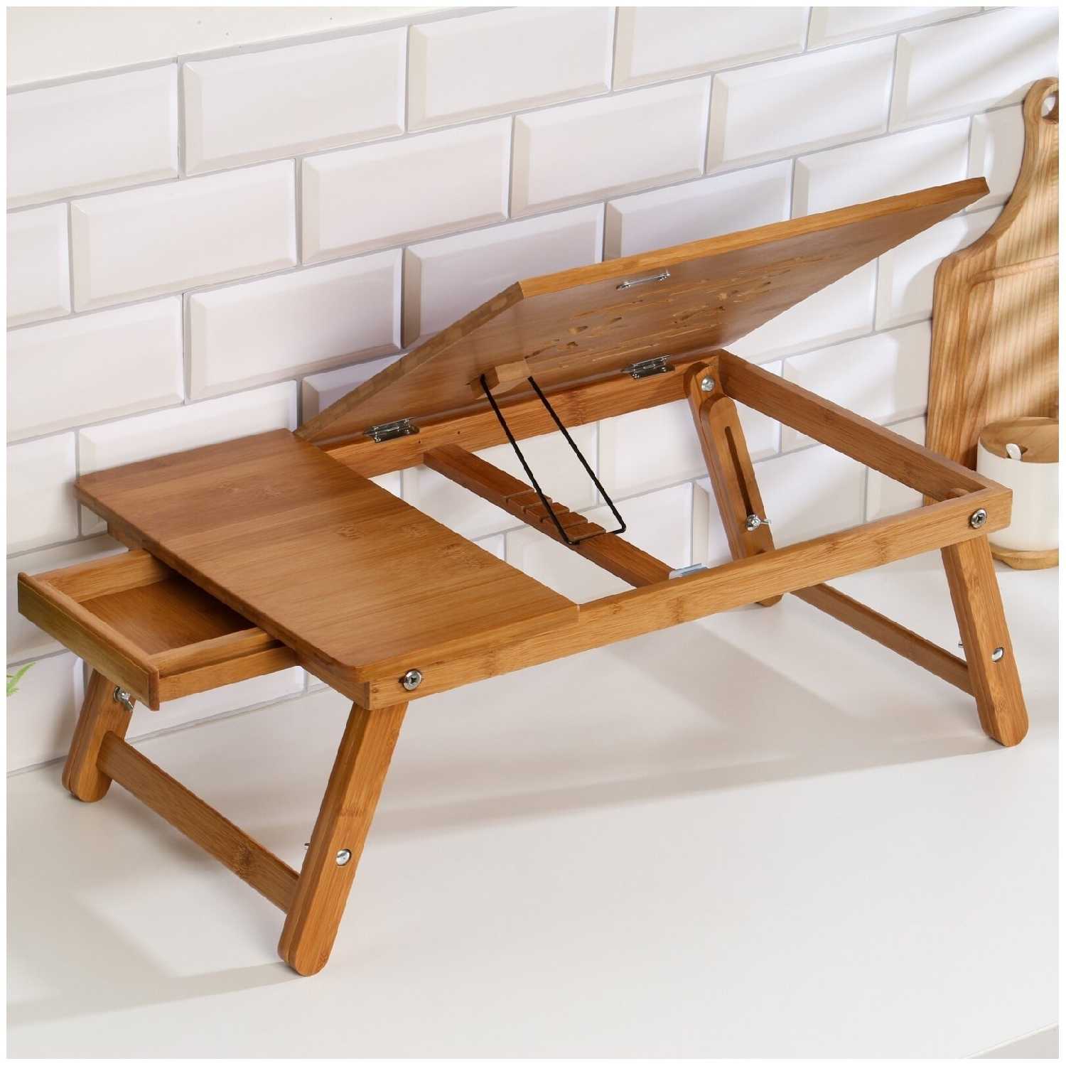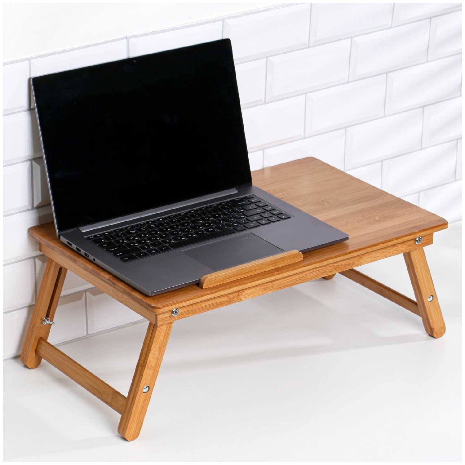 Дополнительная информация : | Столик для ноутбука, выполненный из бамбука, с прямоугольной столешницей, высота 20 см, размер 30х50 см, подходит для завтрака и работы с ноутбуком. |
