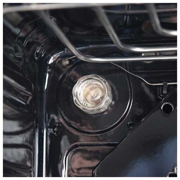 - Подсветка духовки включается автоматически при ее открывании, обеспечивая хорошую видимость готовящегося блюда без необходимости дополнительных манипуляций.