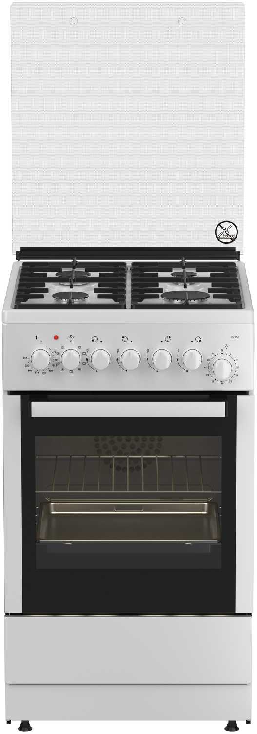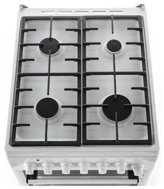 Варочная панель и передняя панель с регуляторами выполнены из нержавеющей стали, что облегчает уход и придает современный вид. Боковые и задняя стенки, а также внутренности под панелью покрыты эмалью. Чугунные решетки над конфорками массивные и долговечные. Стеклянная крышка варочной поверхности добавляет эстетики и функциональности. -