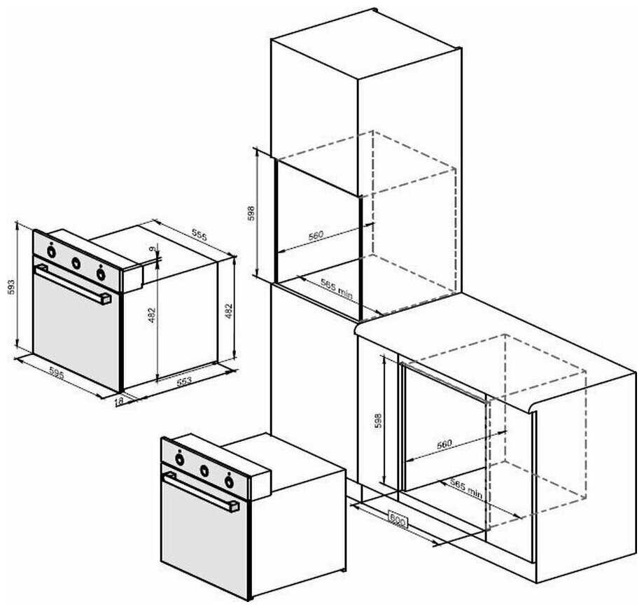 - + Электронный таймер который отключает духовку, 3 режима таймера, звонок, на время готовки, и до какого времени, размер 60 литров