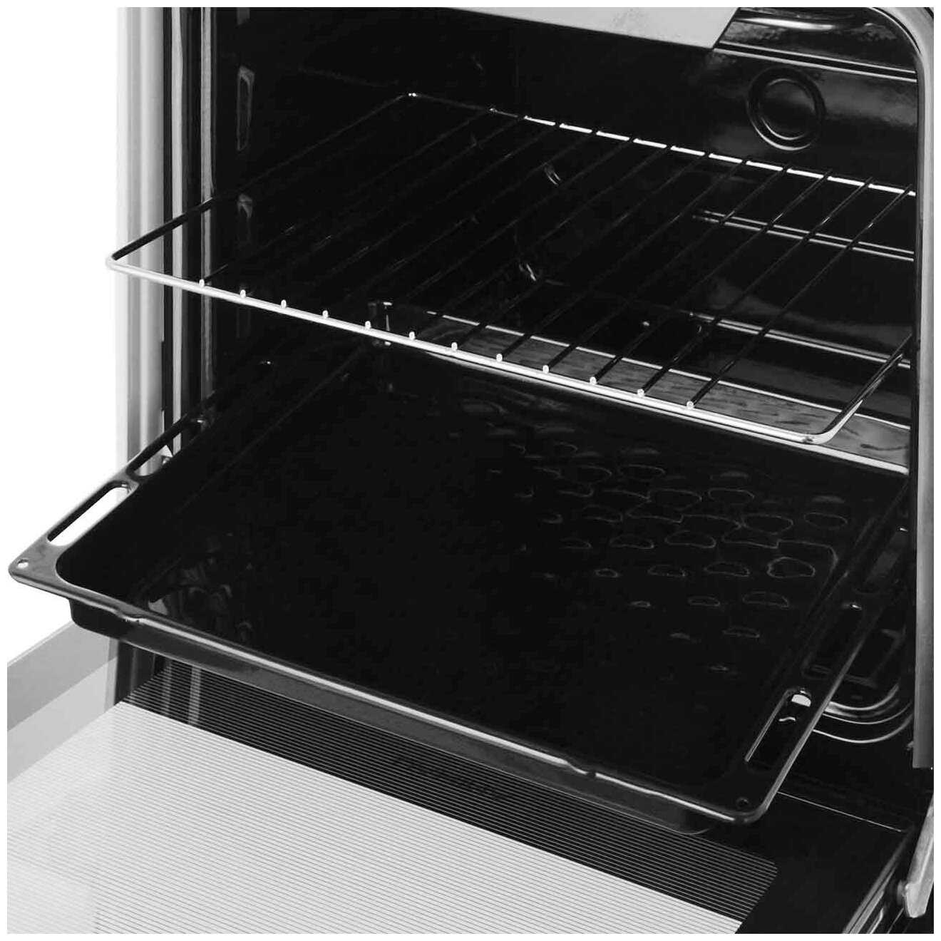 - Эмалированное покрытие внутренних стенок духовки устойчиво к пригоранию: жир удаляется мягкой губкой без абразивов.