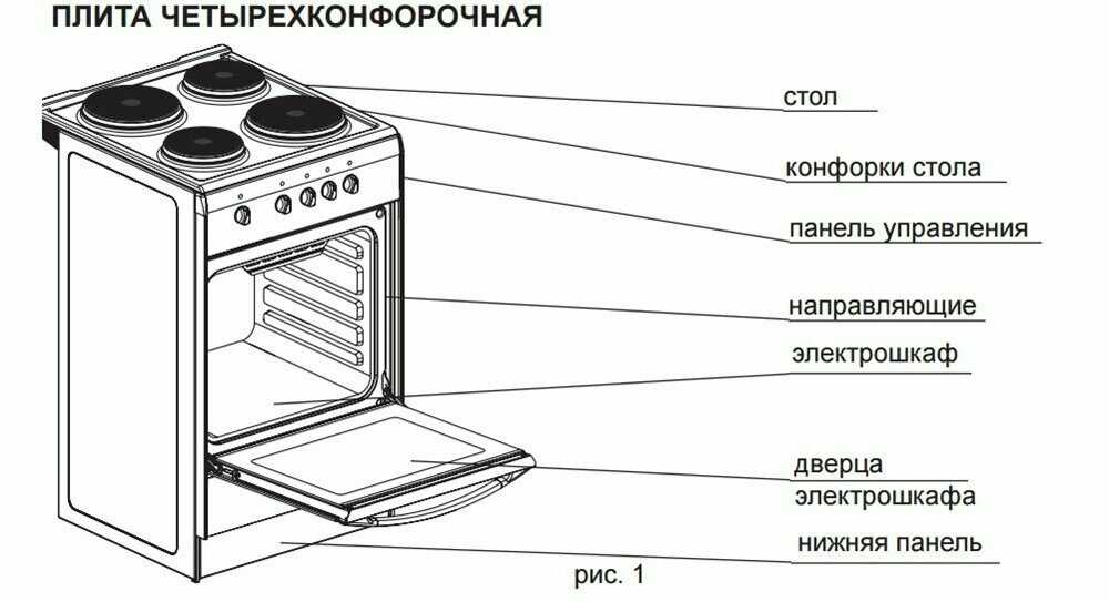 - Невозможность параллельного использования 4 конфорок и шкафа: перегрузка сети приводит к автоматическому отключению.