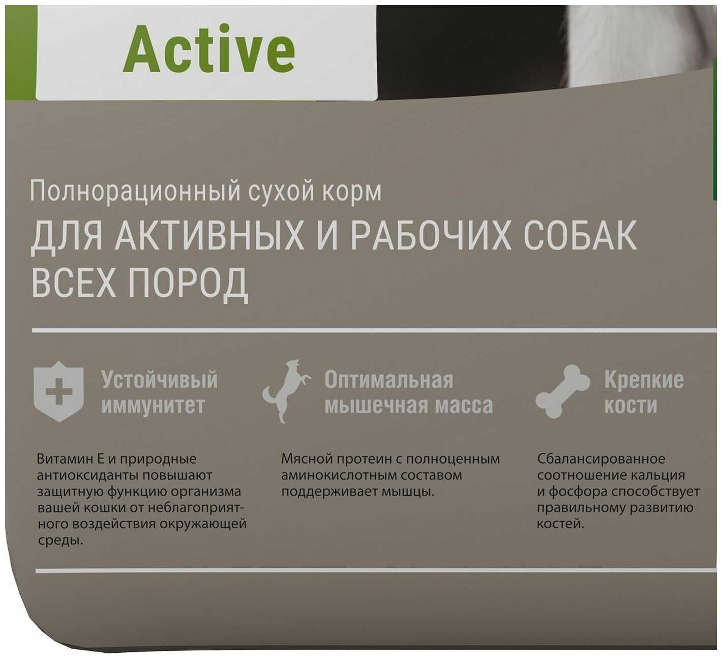 Отзывы подтверждают, что корм подходит для активных собак (например, бультерьеров, хаски): владельцы отмечают нормальную энергичность и отсутствие проблем со стулом при регулярных физических нагрузках. Его состав позиционируется как сбалансированный для взрослых здоровых собак. -