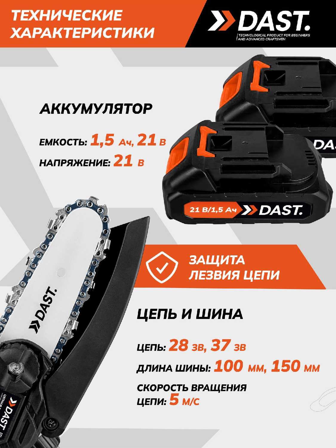 ![Аккумуляторная цепная пила DAST Мини пила [DCPC-21-100SET4] фотография 5](/images/item/04/24/akkumulyatornaya_cepnaya_pila_dast_mini_pila_dcpc_21_100set4-4718337pic5.jpg)