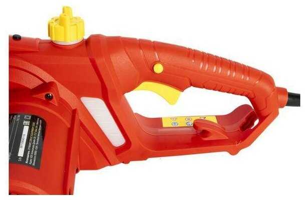 | Особенности конструкции : | антивибрационная система, бесключевая замена оснастки, блокировка кнопки включения, регулировка натяжения цепи без инструмента |