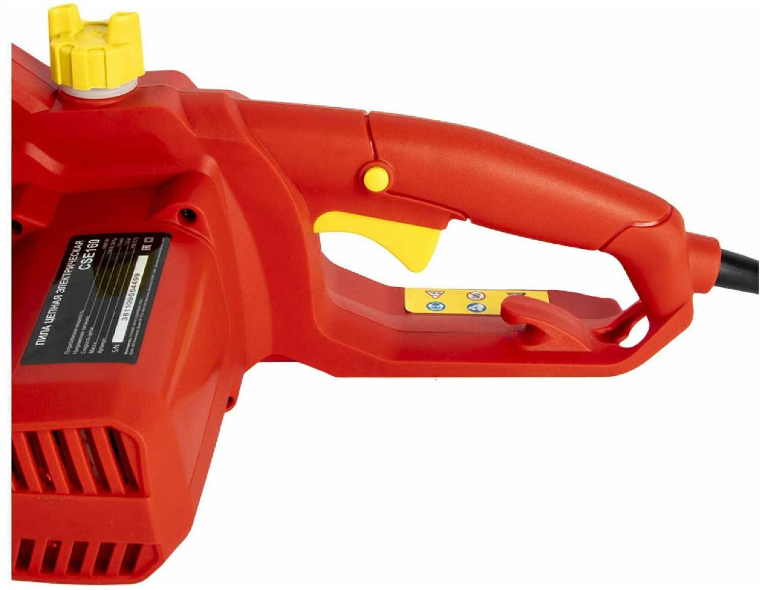 Шнур короткий (конкретная длина не указана, но в отзывах называют это недостатком), что ограничивает мобильность и требует удлинителя. На морозе кабель дубеет, повышая риск повреждения у основания. Это усложняет работу на участке, особенно при удалённости от розетки. Пользователи отмечают, что неудобство компенсируется лёгкостью пилы, но для больших территорий параметр критичен. -