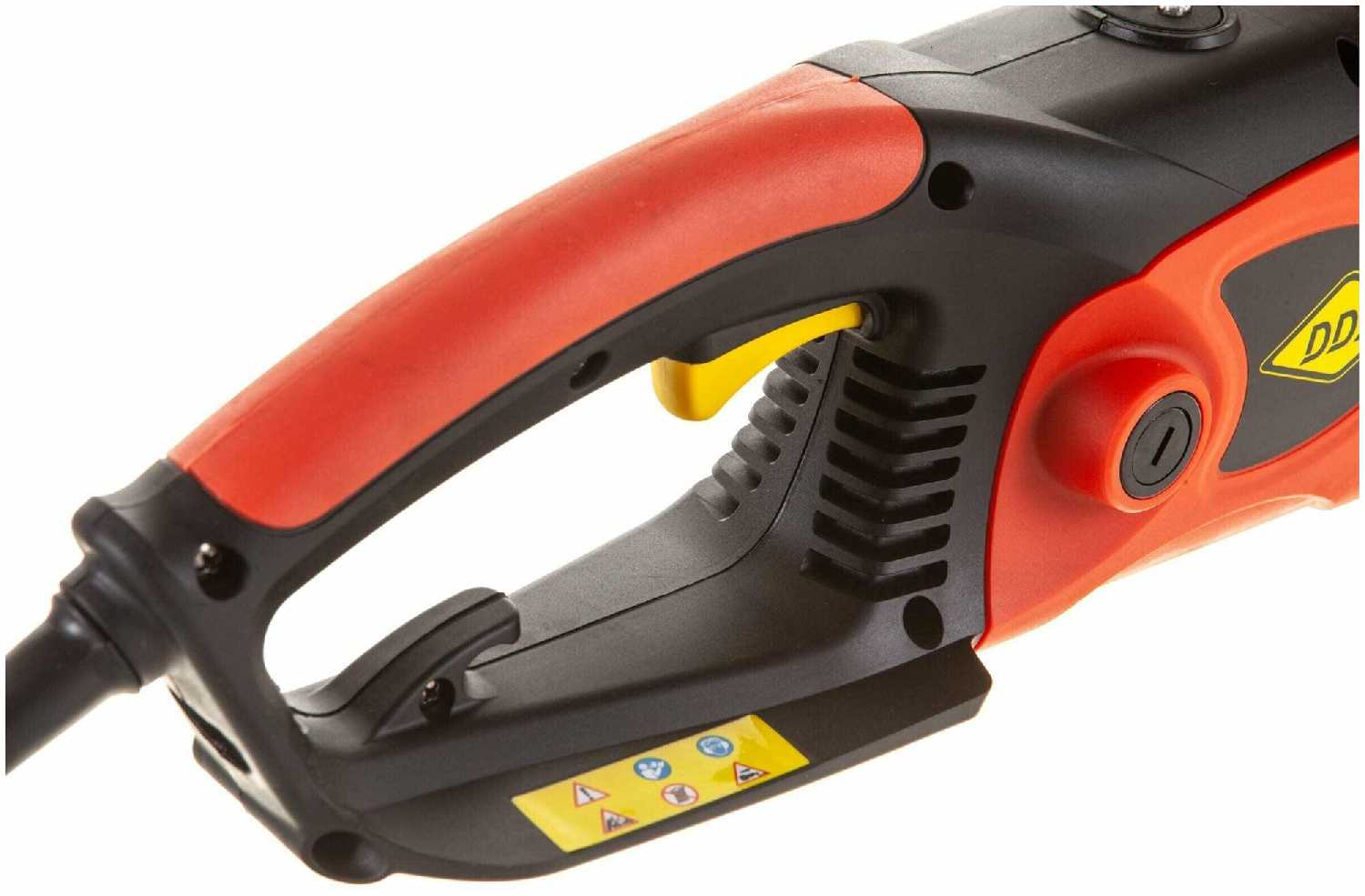 Инструмент работает тише бензиновых аналогов, что позволяет использовать его в помещениях, но при распиле твёрдой древесины шум усиливается. Вес варьируется от 4,4 кг у мощных моделей (2230 Вт) до более лёгких версий, которые подходят даже женщинам — они отмечают эргономичность и простоту удержания. Однако при высотных работах или длительных сессиях масса ощущается, вызывая усталость. Баланс считается приемлемым для дачных задач, но не для профессионального применения. -