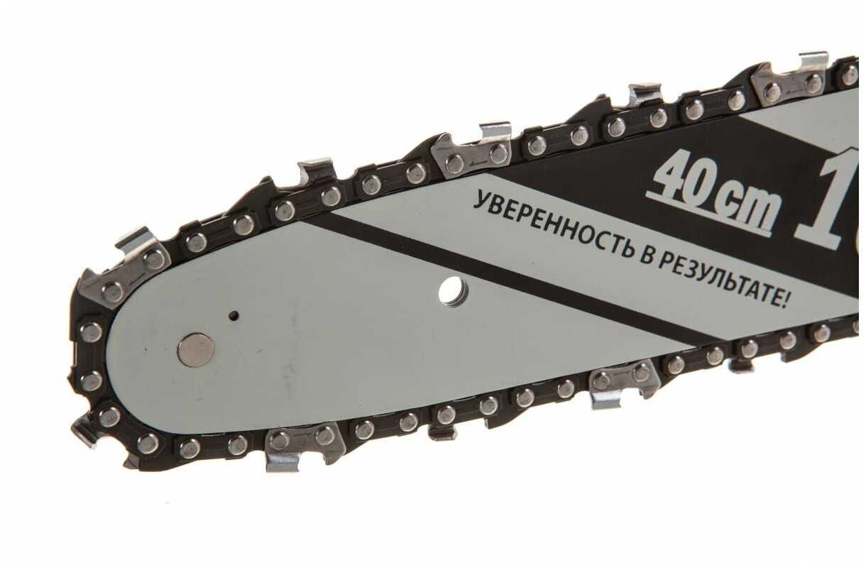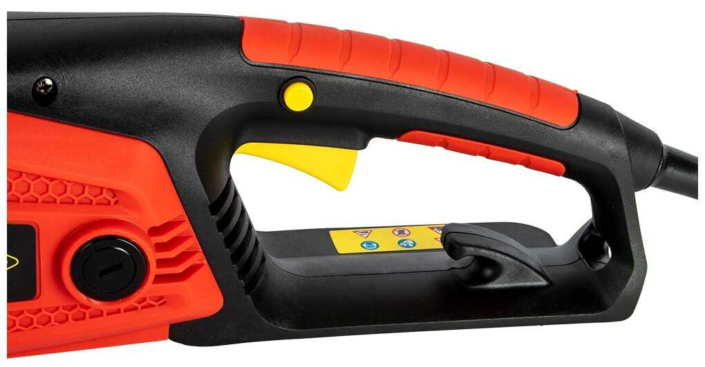 | Особенности конструкции : | бесключевая замена оснастки, блокировка кнопки включения, прорезиненная рукоять, регулировка натяжения цепи без инструмента |