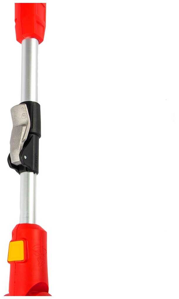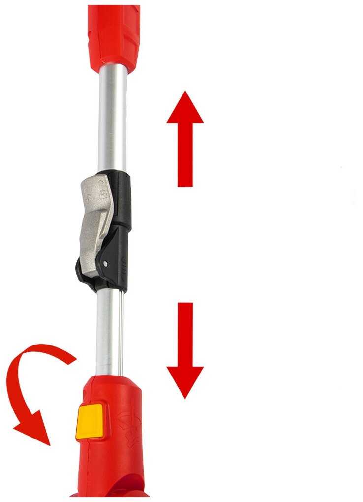 - + Компактный, относительно лёгкий, удобный в эксплуатации, регулировка триммерной головки осуществляется просто нажатием двумя пальцами на кнопки.